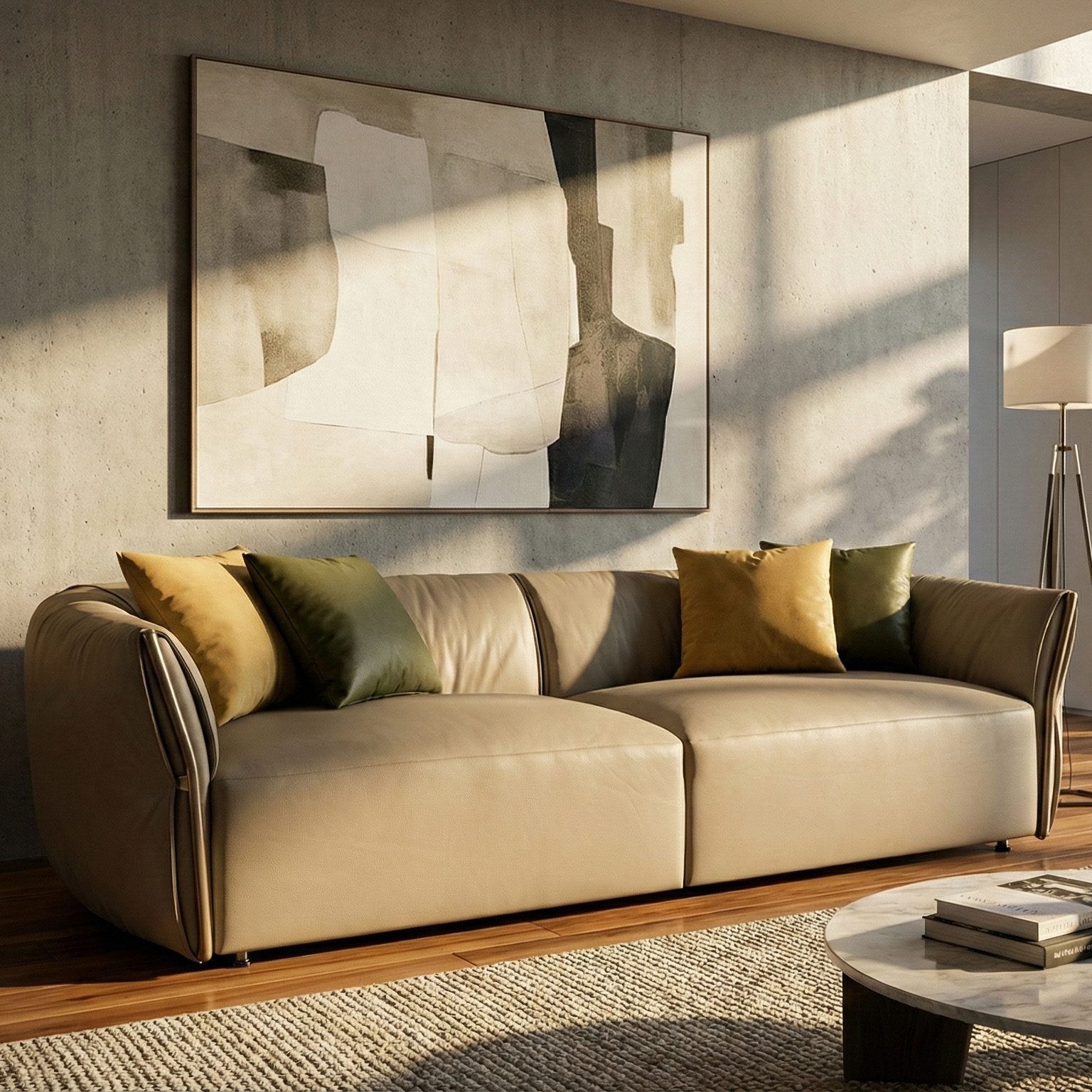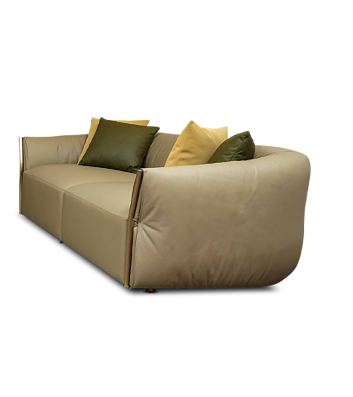 أريكة أبيجيل بأربعة مقاعد هي قطعة جلوس فاخرة صُممت لتوفر راحة استثنائية وأناقة راقية. مُنجدة بجلد طبيعي فاخر، وتستند إلى هيكل داخلي من خشب الصنوبر الصلب مع حشوات من الإسفنج عالي الكثافة وريش الأوز لمنح تجربة جلوس وثيره ومريحة. يتعزز تصميمها بتطعيمات من الفولاذ المقاوم للصدأ بلون ذهبي فاتح على مساند الذراعين، مما يضفي لمسة فخامة أنيقة. تأتي مع وسائد متناسقة تجمع بين المتانة والنعومة والتفاصيل المُصقلة، لتكون قطعة محورية مميزة في المساحات المعيشية الراقية.
