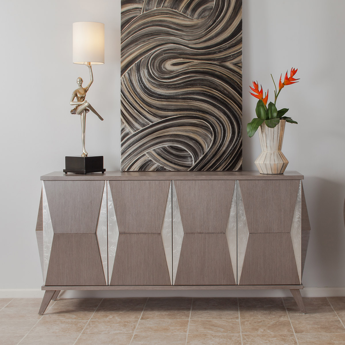 خزانة أليانس 1 الخشبية هي وحدة تخزين عصرية تتميز بتشطيب رمادي متوسط بدرجة خرسانية مغسولة مع لمسات فضية ناعمة. تعكس خطوطها النظيفة ولوحة ألوانها الهادئة طابعاً حديثاً بسيطاً، مما يجعلها إضافة متعددة الاستخدامات تجمع بين العملية والأناقة في تنسيق المساحات الداخلية.
