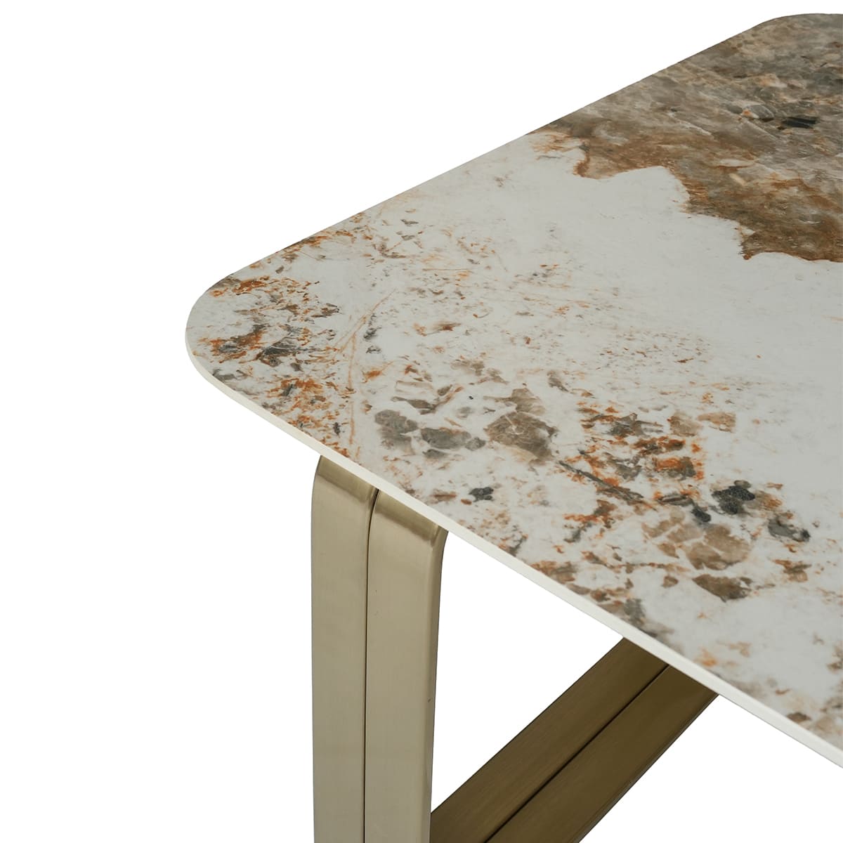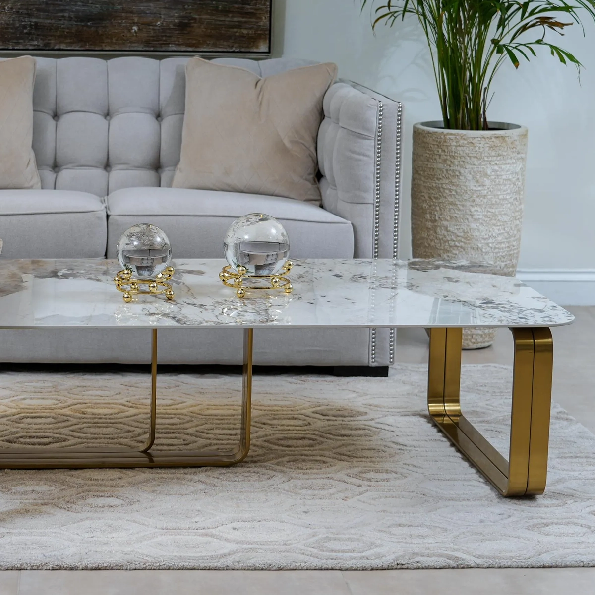 طاولة وسط أسترا هي قطعة عصرية أنيقة تجمع بين الجمال الحديث والمتانة العالية. تتميز بسطح من حجر مُلبد يوفر قوة استثنائية ومقاومة للخدوش مع تشطيب راقٍ يعزز أناقة المساحة. ترتكز على أرجل معدنية متينة تمنحها ثباتاً مع لمسة تصميم معاصر. بفضل تصميمها العملي والمتوازن، تشكل هذه الطاولة نقطة محورية جذابة وتوفر مساحة استخدام مثالية للحياة اليومية في المساحات الداخلية الحديثة.