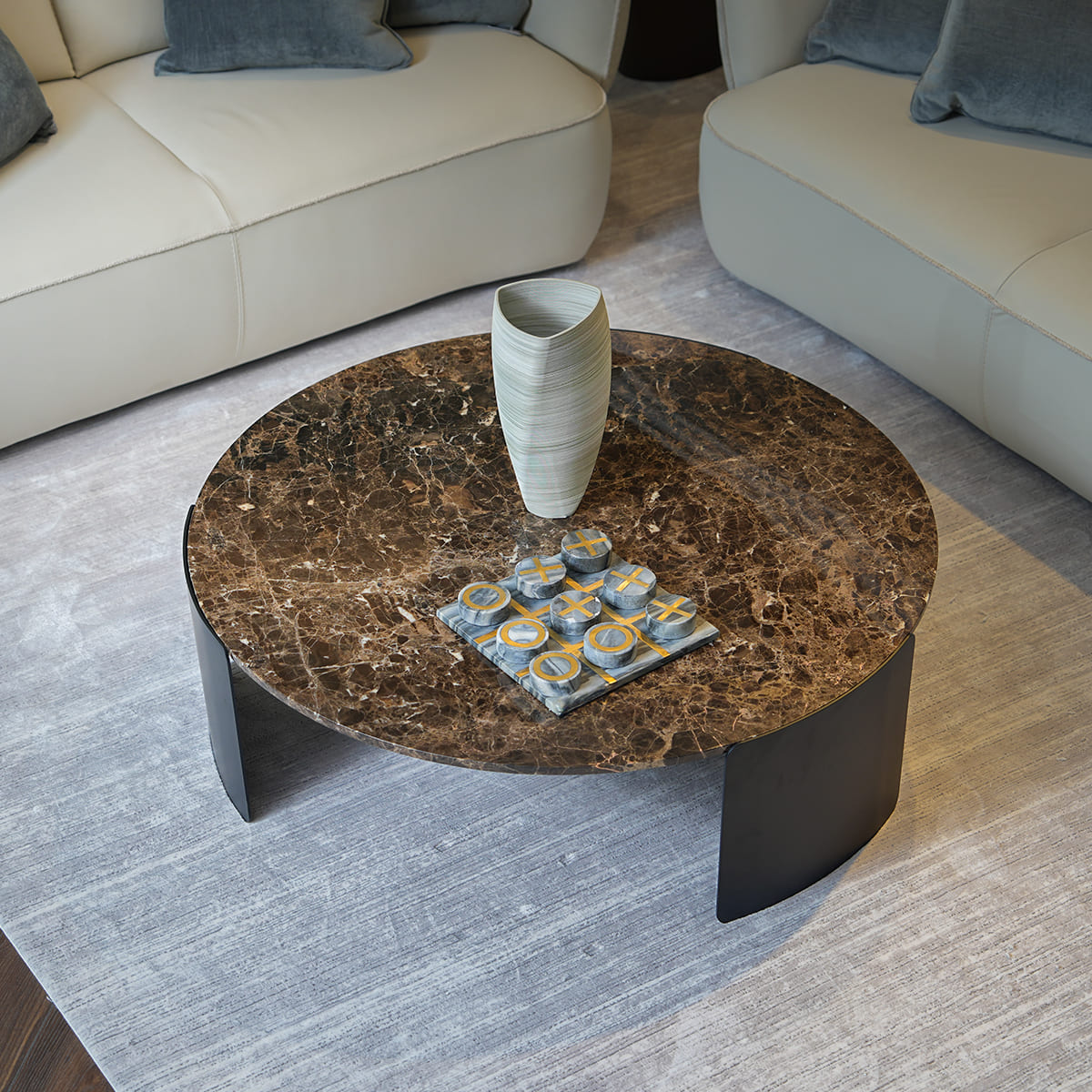 نقدم لكم طاولة القهوة BEBOP، المصممة من رخام بني فخم. تتميز هذه الطاولة بألوانها الدافئة التي تشبه لون القهوة، مما يضيف لمسة من الأناقة الطبيعية والدفء لأي مساحة. التعرجات الفريدة والنقوش الطبيعية في سطح الرخام تجعل كل طاولة فريدة من نوعها، بينما يضيف التشطيب اللامع لمسة من الفخامة والرقي.