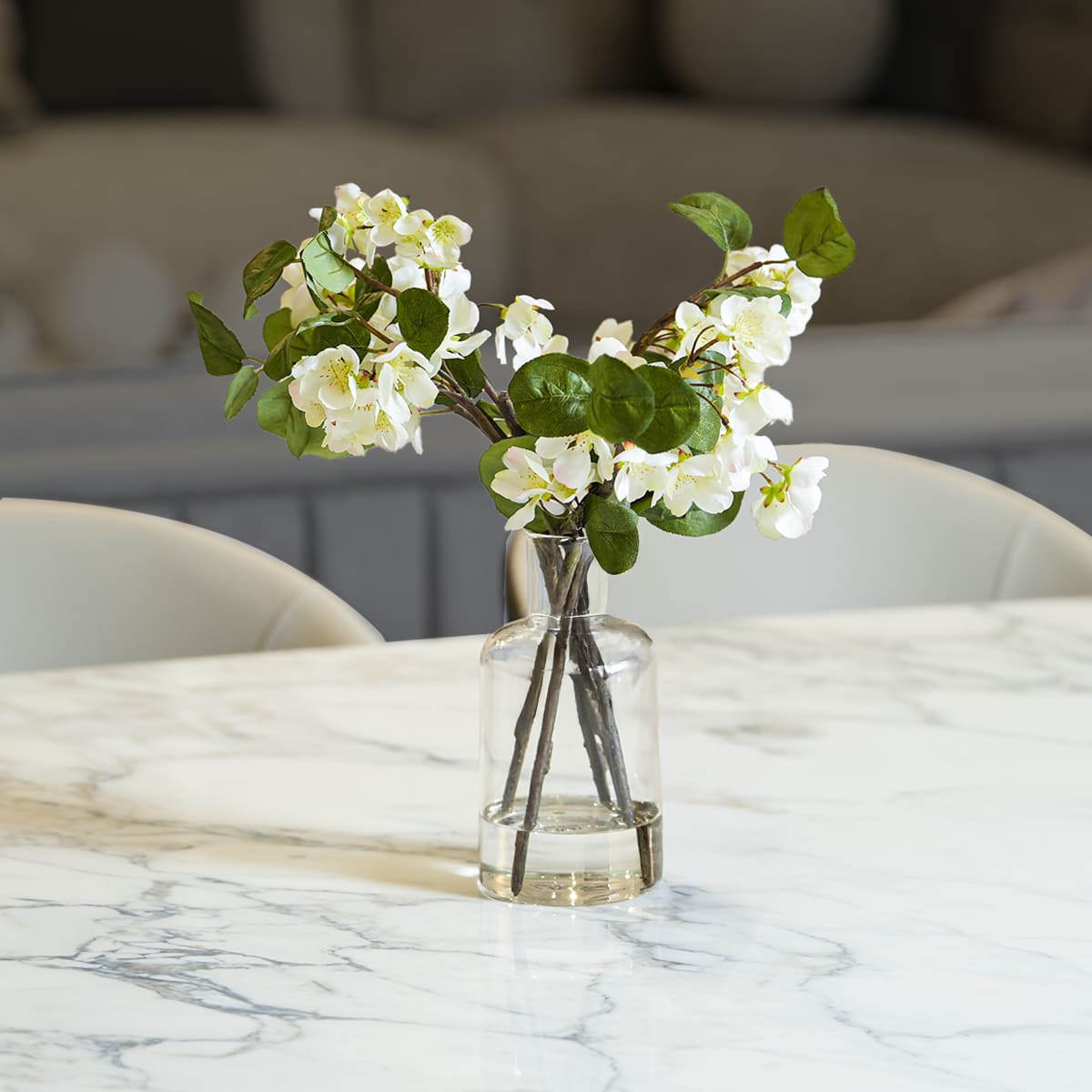 أدخل جمال أزهار الكمثرى الرقيق إلى مساحتك مع حديقة غصن أزهار الكمثرى المائية الصناعية لدينا. تتميز هذه التشكيلة الأنيقة بفروع أزهار الكمثرى الصناعية التي تبدو واقعية، مُنسقة بفن مع عناصر مائية صناعية تحاكي الواقع، مما يخلق عرضًا هادئًا ومنعشًا مستوحى من جمال الحدائق.