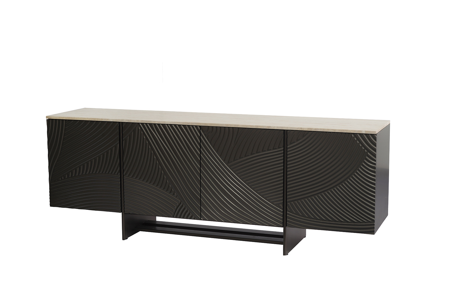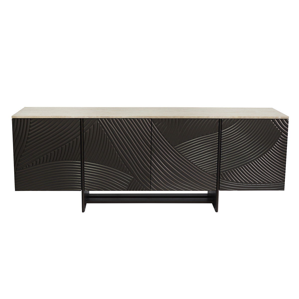 خزانة جانبية "سيراميكا" تجمع بين المواد الطبيعية والتصميم العصري، مصنوعة من الرخام والخشب المضغوط (MDF) والمعدن، لتُضفي لمسةً من الفخامة غير المتناهية. سطحها مصنوع من حجر الترافرتينو الطبيعي، الذي يُعجب به بفضل ملمسه الترابي وعروقه العضوية التي تُضفي على القطعة طابعًا مميزًا وعمقًا. هيكلها مصنوع من الخشب المضغوط (MDF) مع طلاء بني داكن غني، مما يُضفي تباينًا دافئًا وراقيًا، بينما تُكمل القاعدة المعدنية بطلاء مسحوق بني داكن متناسق لضمان الثبات والمظهر الأنيق والمتماسك. حل تخزين مثالي مُصمم لتعزيز بيئات الطعام والمعيشة الراقية.