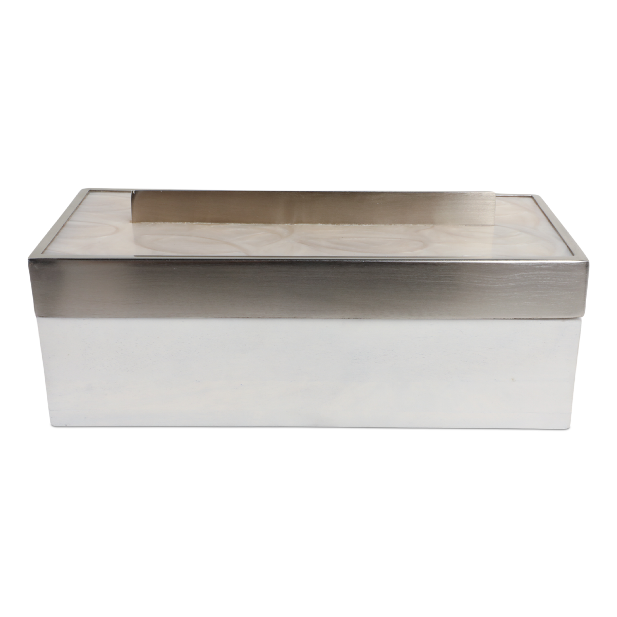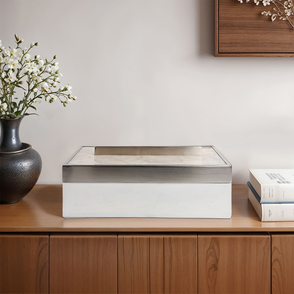 صندوق كولشيستر المصنوع من الخشب والراتنج بملمس يشبه المايكا يتميّز بمزيج فريد يجمع بين دفء الخشب الطبيعي وجاذبية الراتنج المحاكي للأحجار، وهو مُحاط بطبقة أكريليك شفافة تُبرز تدرجاته وطبقاته. بفضل ملمسه المتعدد الطبقات وتفاصيله العصرية، يُعد قطعة ديكور لافتة تضيف عمقاً وجمالاً لأي مساحة.