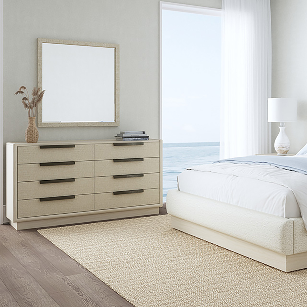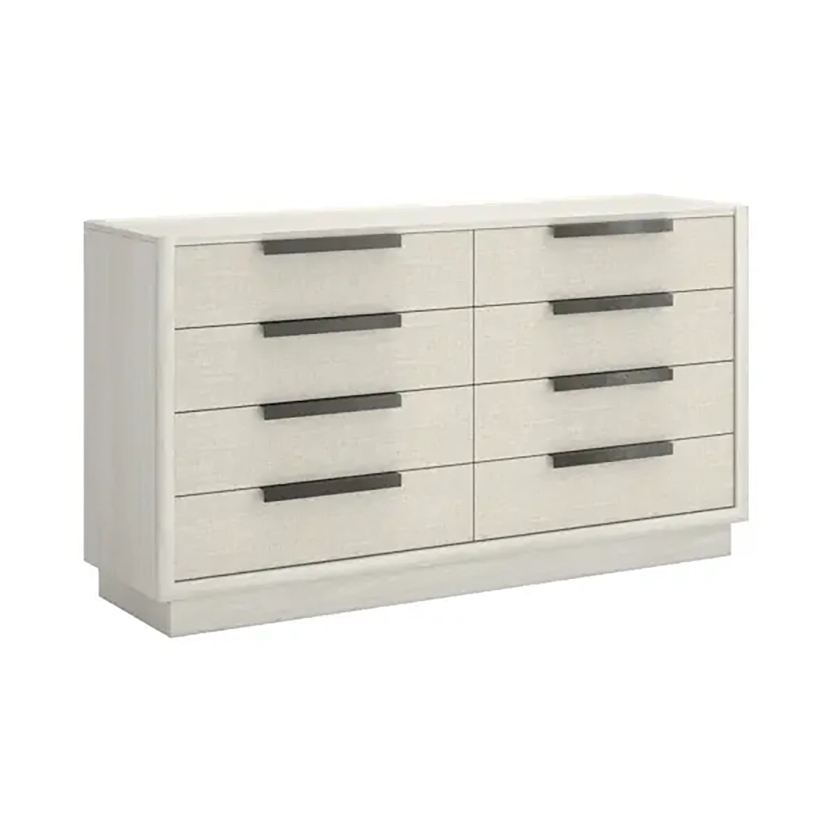 خزانة أدراج كوتيير – إيه آر تي للأثاث هي قطعة تخزين راقية تجمع بين الطابع المعماري العصري والوظيفة العملية. صُنعت من خشب صلب مع قشرة من خشب البلوط الأبيض بتشطيبات متنوعة، وتتميز بلوحات قماشية منسوجة تضيف ملمساً بصرياً دافئاً ضمن لوحة ألوان حيادية أنيقة. يعكس تصميمها الهندسي الجريء تأثيرات العمارة الحديثة، بينما توفر الأدراج الواسعة مساحة تخزين منظمة وكافية. بفضل مزيج الخامات الراقية والتصميم المُصقل، تقدم هذه الخزانة بساطة عصرية بحضور قوي يليق بغرف النوم الأنيقة.