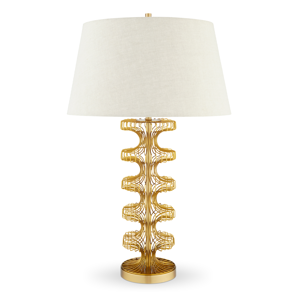 مصباح الطاولة إيرو يستوحي تصميمه من مبادئ المصمم المعماري الفنلندي الأمريكي إيرو سارينن. يتميز بقاعدة أسطوانية أنيقة مصنوعة من أسلاك معدنية منحنية بدقة بلمسة نحاسية عتيقة، مكوّنة من 32 قطعة متصلة بانسيابية فنية. يعلوه غطاء من قماش الكتان بلون البيج الرملي، ليجمع بين الحرفية العالية والأناقة العصرية بأسلوب راقٍ ومتفرّد.