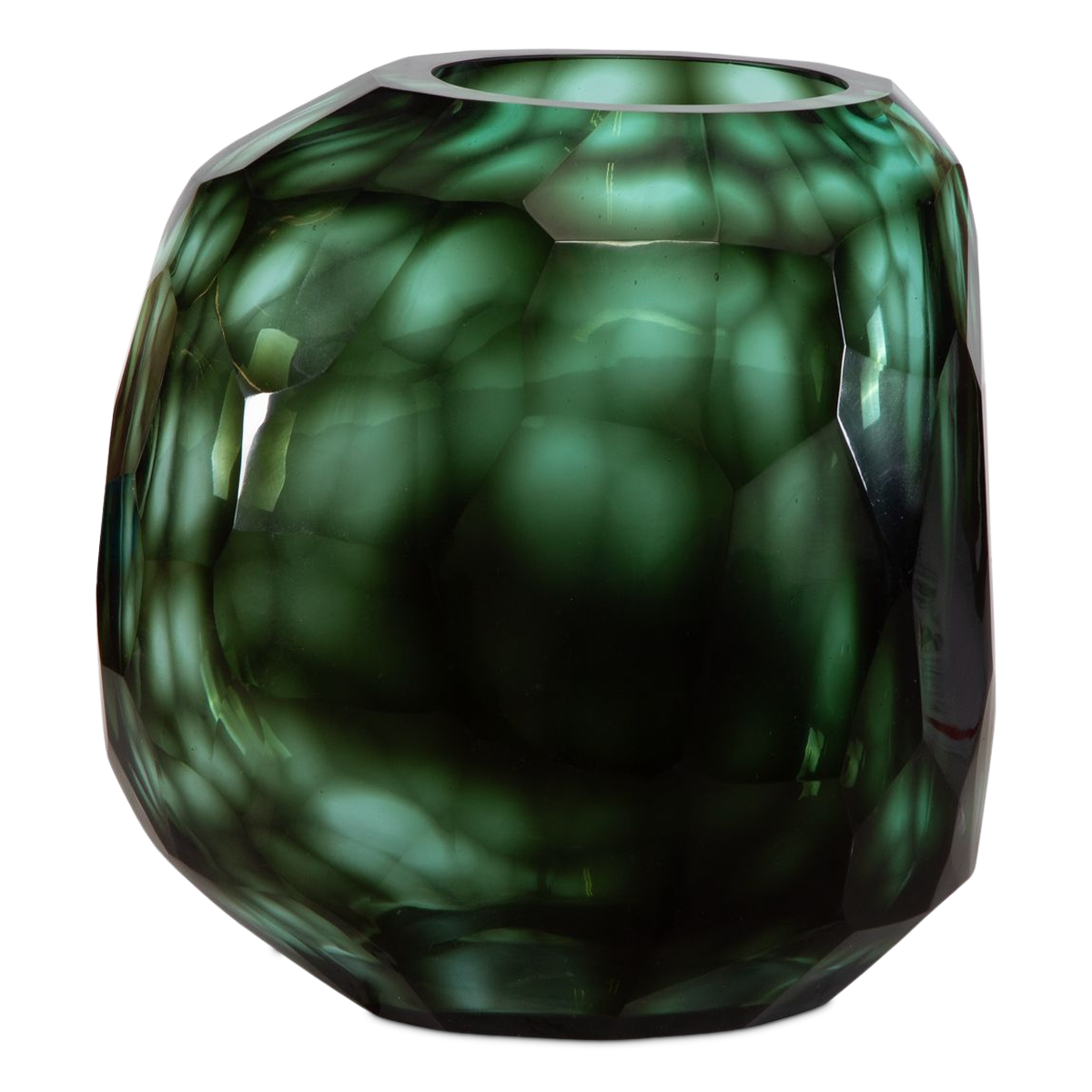 الزجاج الفني المصنوع يدويًا والمنفوخ والمقطوع بتدرجات الزمرد يشبه في جماله الأحجار الكريمة الفاخرة. وبسبب الطبيعة الحرفية للزجاج الفني، من المتوقع ظهور اختلافات طفيفة في اللون والشكل، مما يمنح كل قطعة تفرّدًا ولمسة فنية خاصة.