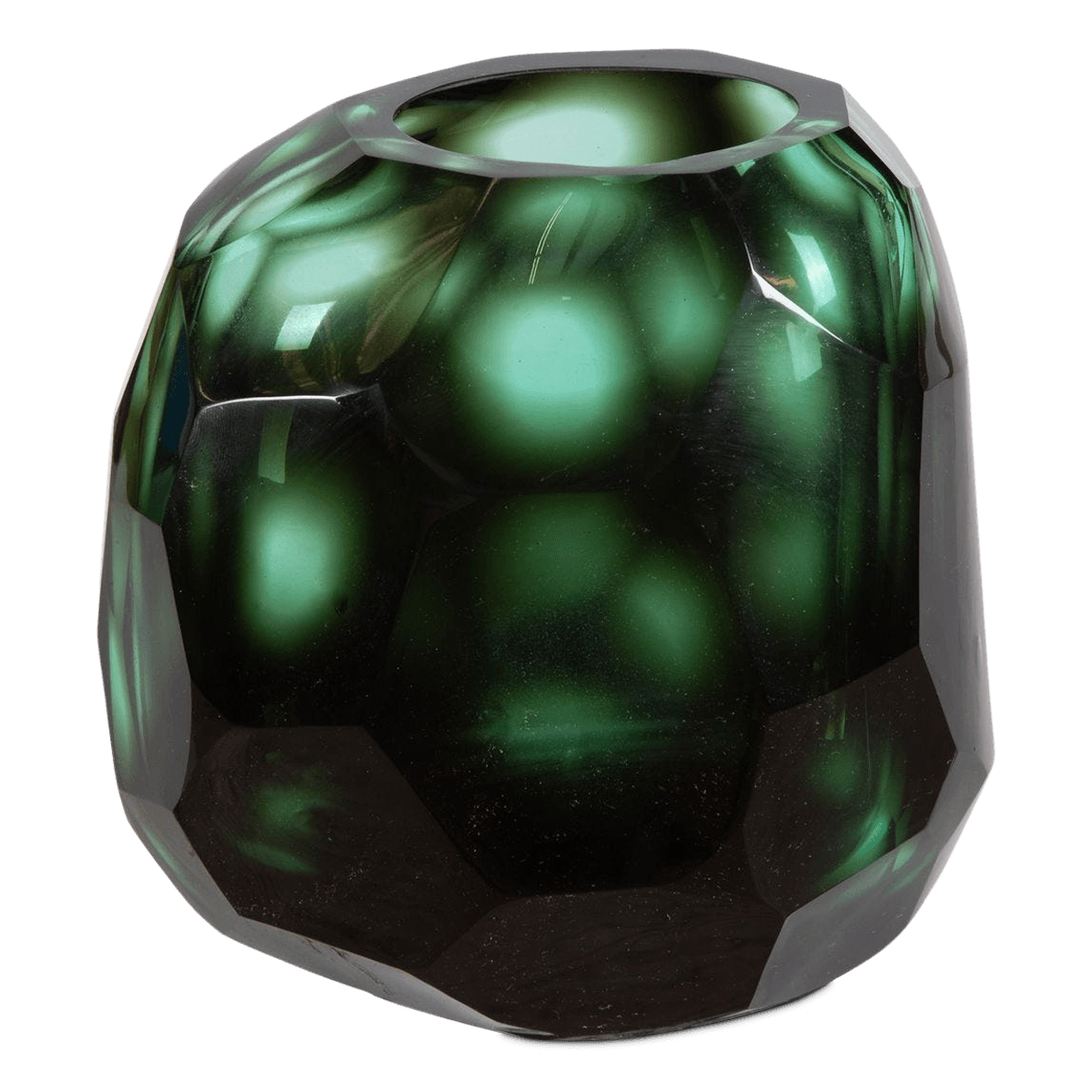 الزجاج الفني المصنوع يدويًا والمنفوخ والمقطوع بلوحه الزمردي يشبه في رونقه الأحجار الكريمة الفاخرة. ونظرًا للطبيعة الحرفية للزجاج الفني، فمن الطبيعي أن تظهر اختلافات طفيفة في اللون والشكل، مما يمنح كل قطعة فرادة وتميّزًا خاصًا.