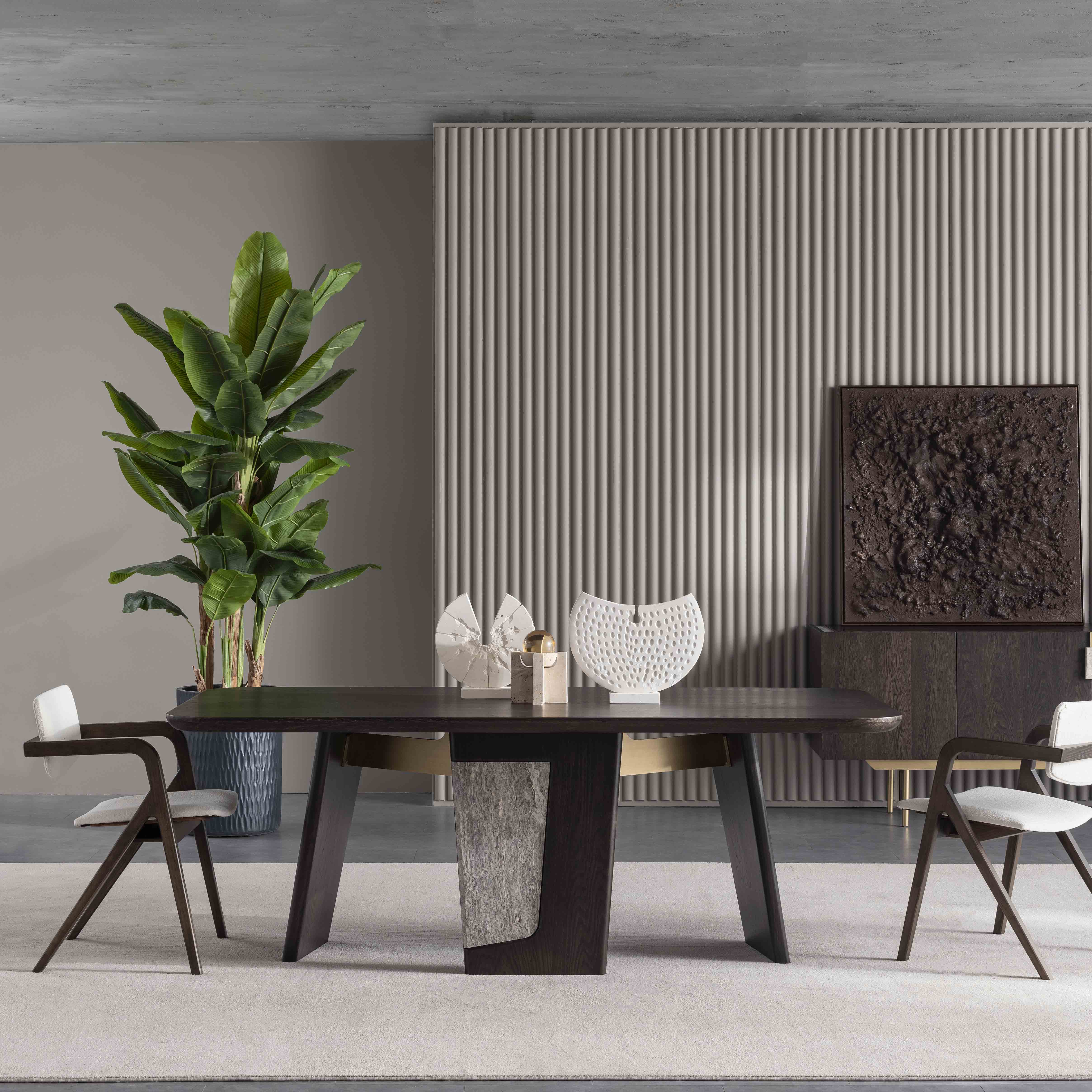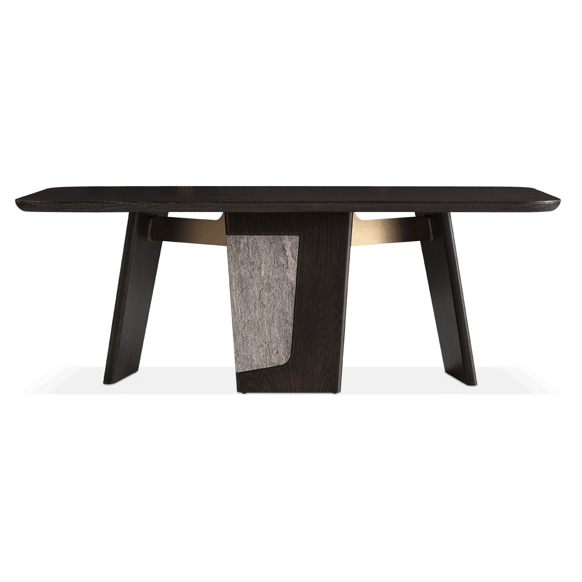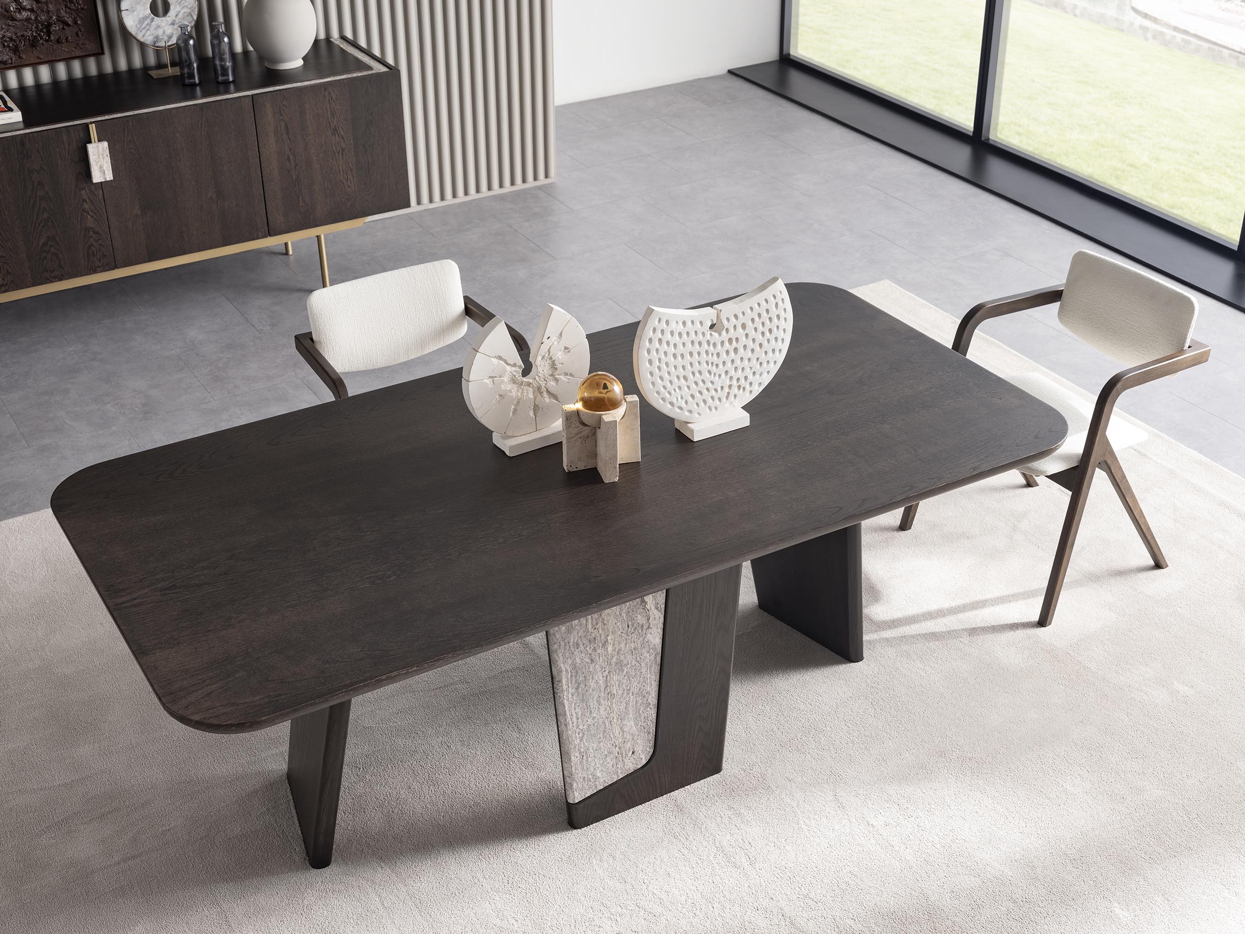 طقم طاولة طعام إنزو يجسّد الأناقة المعاصرة من خلال حِرفية متقنة وخيارات تصميم قابلة للتخصيص. يتوفر السطح بأحجام مختارة مع الحفاظ على بنيته المميزة، بينما يظل تصميم القواعد ثابتاً لضمان التوازن البصري. يتيح التصميم مرونة في التشطيبات، مع إمكانية إضافة تفاصيل رخامية ولمسات معدنية باللونين الذهبي أو الأسود، إلى جانب مجموعة من ألوان الكونسيلر وتشطيبات قشرة البلوط المصنوعة يدوياً التي يمكن تطبيقها على السطح والقواعد معاً. يجمع هذا الطقم بين التنوع والخامات الراقية ليقدّم تجربة طعام مُصقَلة تعزز دفء وشخصية المساحات العصرية.