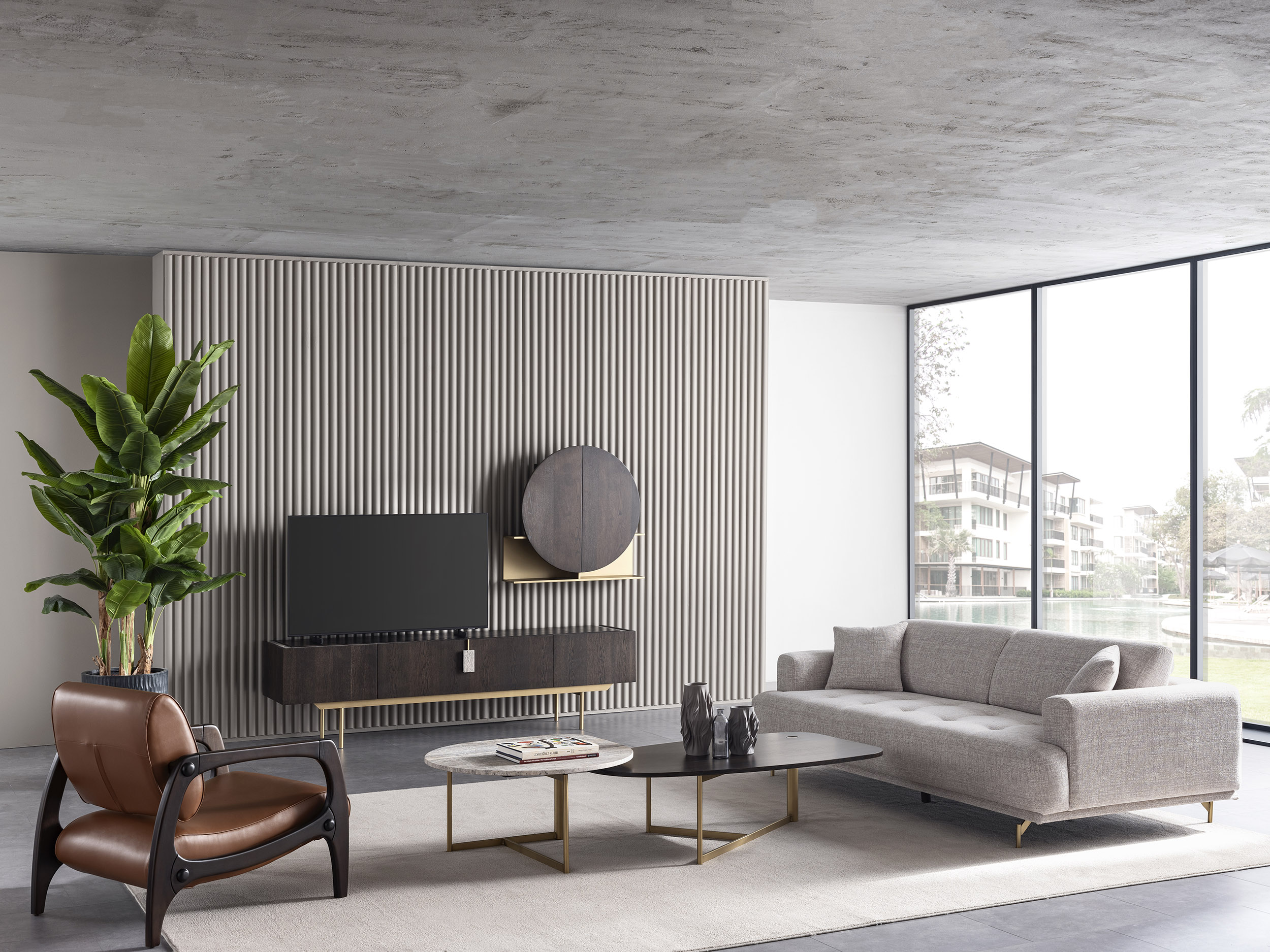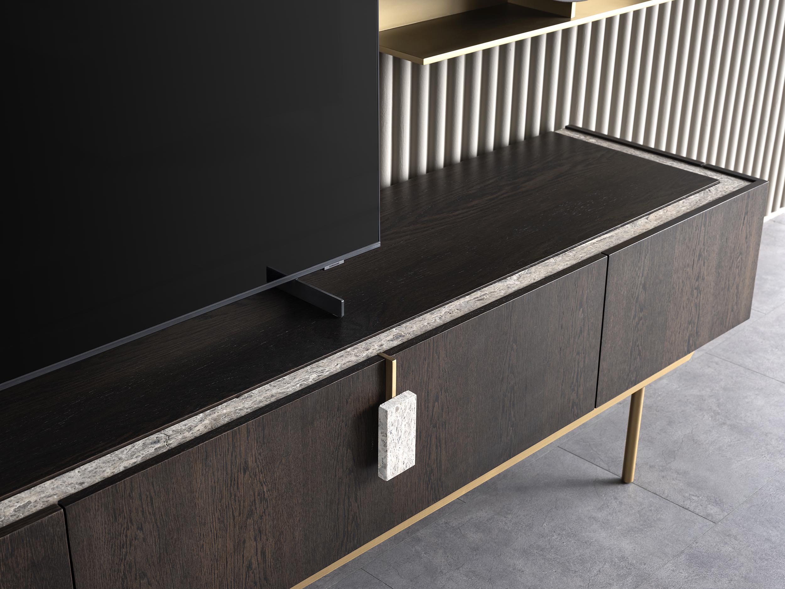 خزانة إنزو هي تجسيد راقٍ لجمال الطبيعة وروح التصميم المعاصر، حيث تحكي تفاصيل نسيج الخشب الفريد قصةً تنعكس في كل جزء منها. تضفي الدرجات العميقة والغنية إحساساً بالدفء والترحاب، بينما تعزّز الأنماط الطبيعية عمقها البصري وتمنح المساحة طابعاً نابضاً بالحياة والشخصية. صُممت لتجمع بين العملية والجاذبية الجمالية، لتكون حلاً مثالياً لوضع الأجهزة مع حضور أنيق يشكّل نقطة ارتكاز مميزة في غرفة المعيشة.