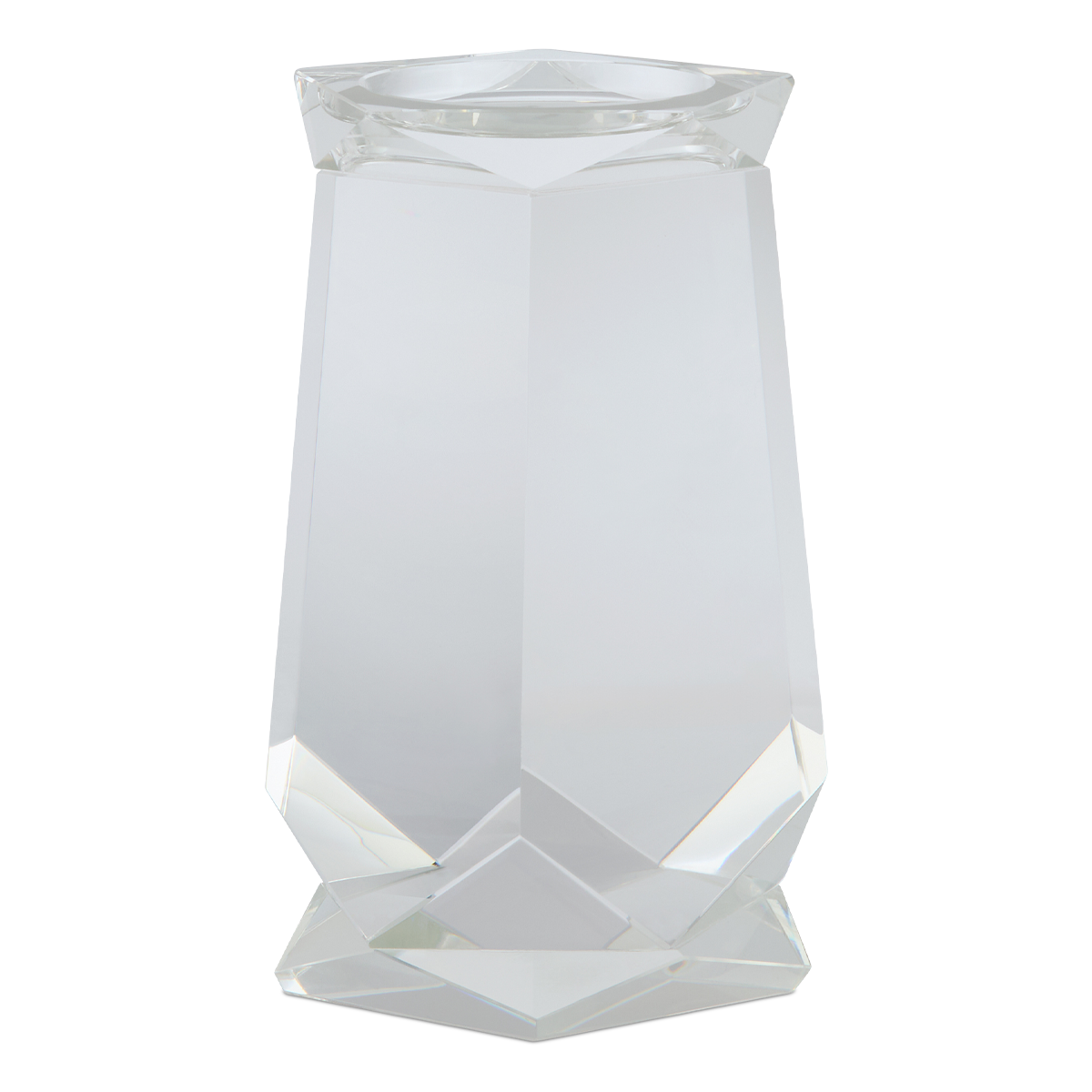 حاملات الشموع فاسيتد بيلار تتميّز بتصميم عصري مصنوع من الكريستال النقي، يجمع بين الحجم اللافت والشفافية الدقيقة.