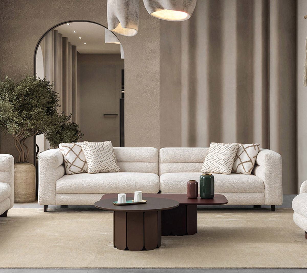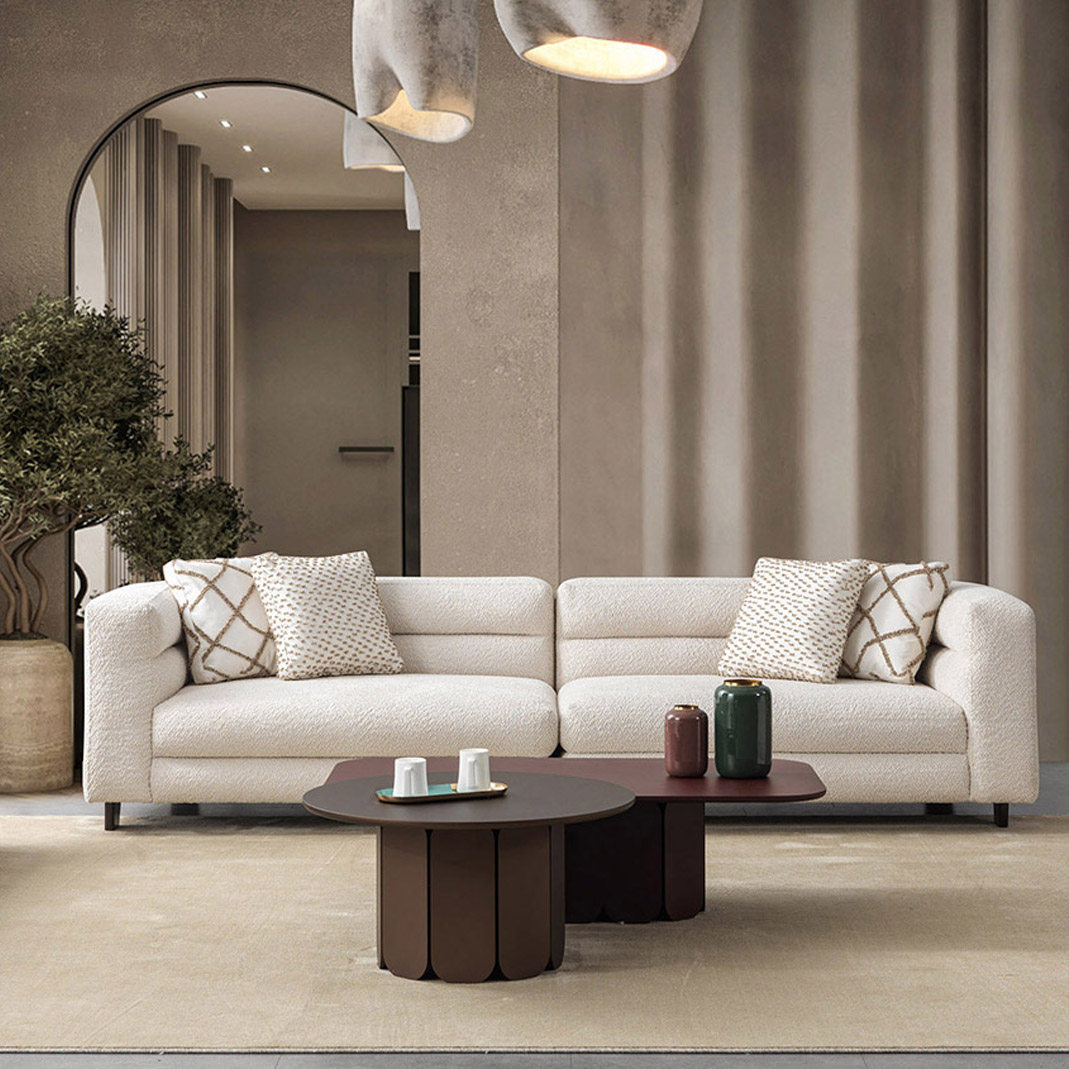 أريكة فيوري بأربعة مقاعد هي قطعة جلوس راقية تجمع بين الراحة الفائقة والمتانة طويلة الأمد. مُنجدة بقماش عالي الجودة يمنح إحساسًا ناعمًا ومريحًا، مع طبقة ألياف تضيف مزيدًا من الفخامة والدفء. يعتمد تصميمها الهندسي على نظام نوابض فولاذية متينة توفر دعماً ثابتاً ومرونة مستمرة مع مرور الوقت. صُممت هذه الأريكة لتقدم تجربة جلوس فاخرة تجمع بين القوة الهيكلية والنعومة المُصقلة، مما يجعلها إضافة أنيقة للمساحات المعيشية العصرية.
