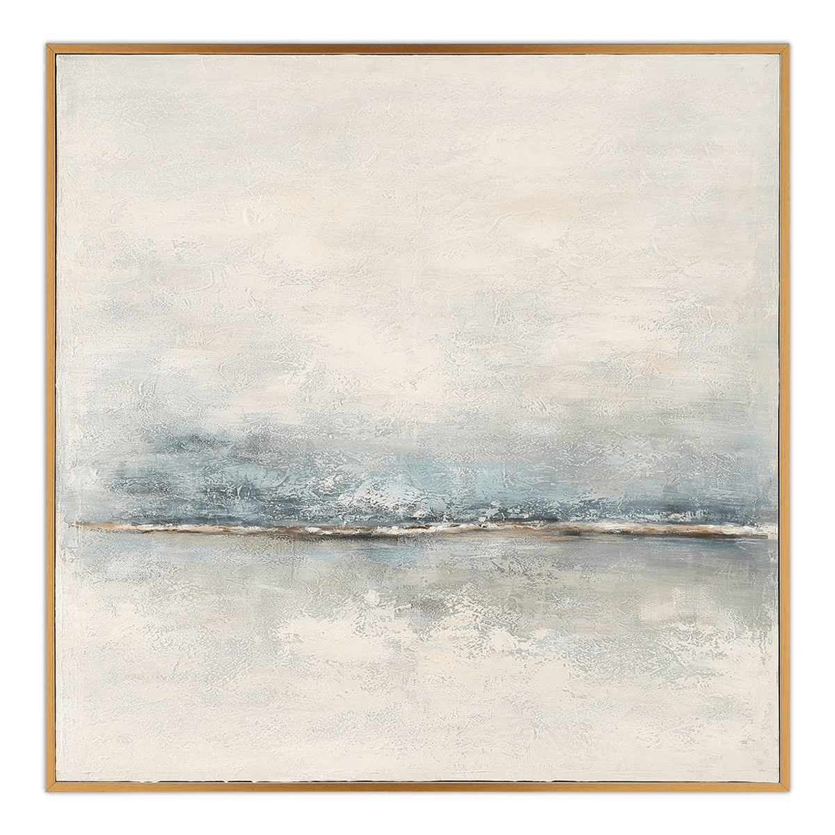 تنقلك هذه اللوحة التجريدية المرسومة يدويًا على القماش إلى أجواء صباح ضبابي هادئ، حيث تتداخل الظلال الباردة من الرمادي والأزرق مع الدرجات الدافئة من الكريمي والبني في توازن فني جميل. تُحيط بها إطار غاليري باللون الذهبي يضيف لمسة من الفخامة ويبرز عمق الألوان وتفاصيلها. وبسبب الطابع الحرفي لهذا العمل، قد تختلف كل قطعة قليلًا عن الأخرى بشكل يضيف لها فرادة وتميزًا خاصًا.