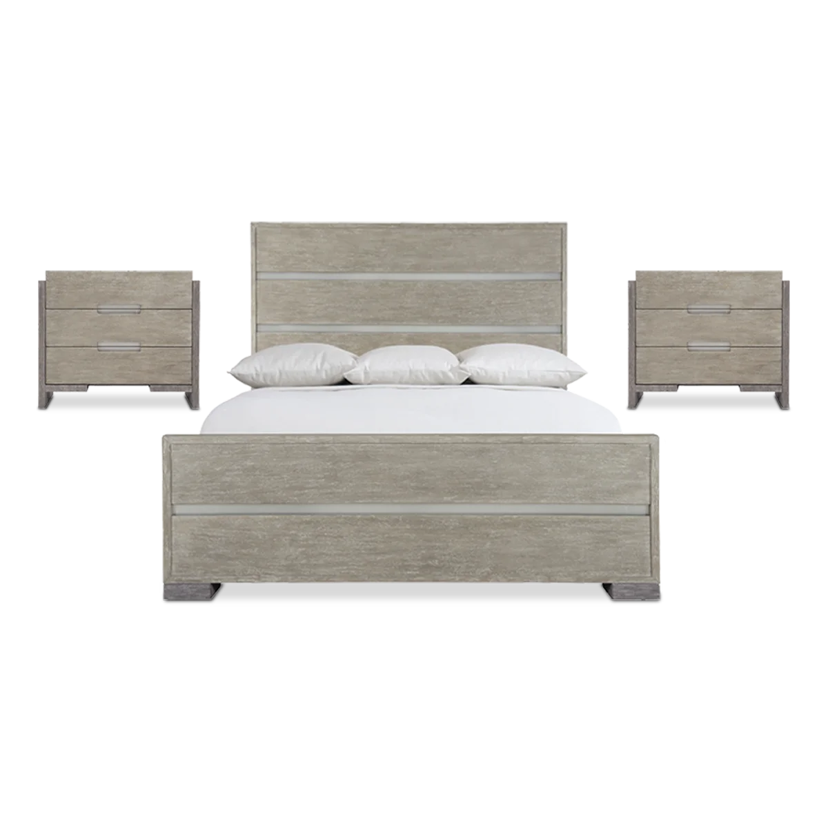 طقم غرفة نوم فاونديشنز II هو مجموعة أنيقة مصنوعة من خشب الأكاسيا المعالج بتقنية التفريش مع تشطيب مميز يبرز الخطوط الطبيعية، ليقدم نمطاً خطياً يجمع بين دفء الطابع الريفي والتصميم العصري. يخلق هذا التوازن بين الملمس الطبيعي والخطوط النظيفة أجواءً مريحة وراقية داخل غرفة النوم.