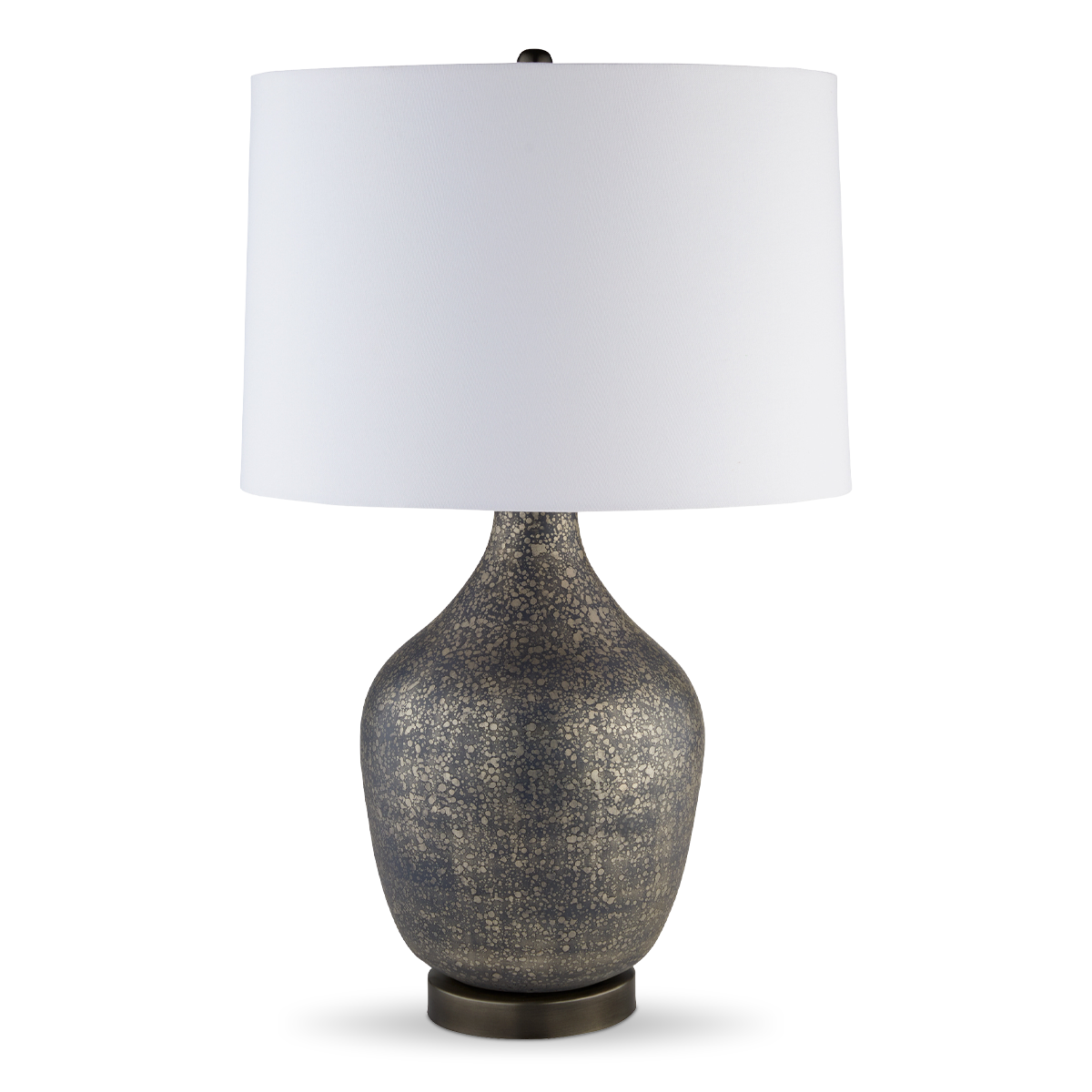مصباح الطاولة فريسنيلو سُمِّي تيمنًا بمدينة مكسيكية معروفة بثرائها بمناجم الفضة. صُنع من زجاج بتدرجات الأزرق والباتينا الفضية، ويتميز بتفاصيل معدنية داكنة تمنحه مظهرًا عصريًا أنيقًا ولمسة فخامة راقية.