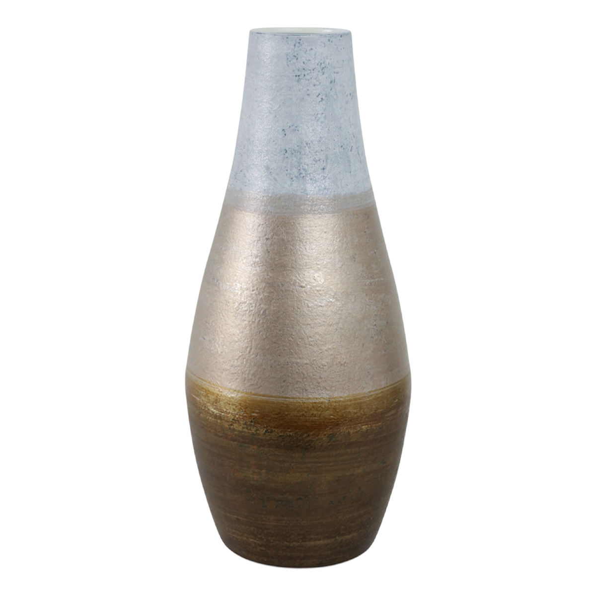 مزهرية الساعة الرملية بتدرّج اللون الذهبي تضيف لمسة من اللمعان العصري إلى أي مساحة. صُنعت من الزجاج بتشطيب معدني متدرّج، وتتميّز بشكل ساعة رملية أنيق يعكس الضوء بطريقة جميلة. يمنح التدرّج الناعم من الذهبي الدافئ إلى الشفافية لمسة عمق ورقي وإشراقة فاخرة على الكونسول والرفوف والطاولات. تبدو مميزة كقطعة منفردة أو مع سيقان نباتية ناعمة.