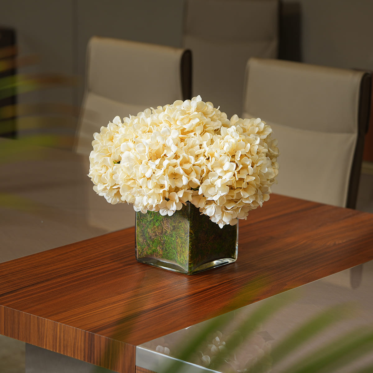 أدخل سحر أزهار الهيدرنجا المتفتحة إلى منزلك مع حديقة الهيدرنجا المزيفة مع الطحالب الصناعية. تتميز هذه التشكيلة المصممة ببراعة بأزهار هيدرنجا صناعية واقعية، متشابكة في سرير ناعم من الطحالب الصناعية، مما يخلق عرضًا نابضًا بالحياة ومنعشًا.
