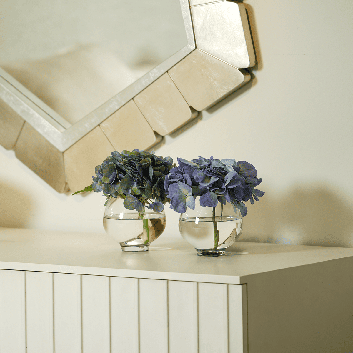 استمتع بسحر الطبيعة مع الهدرانجيا بدرجات الأزرق والبنفسجي، المعروضة بعناية داخل مزهرية زجاجية أنيقة. بارتفاع ١٨ سم، يُعد هذا التنسيق قطعة متعددة الاستخدامات تضيف لمسة جمالية إلى غرفة المعيشة أو غرفة النوم أو مدخل المنزل، متناغماً مع الأساليب الكلاسيكية والحديثة على حد سواء. استمتع بجاذبية هذا التنسيق الذي لا يحتاج إلى أي عناية، فهو مثالي لمحبي الديكور المنعش والمفعم بالحيوية.