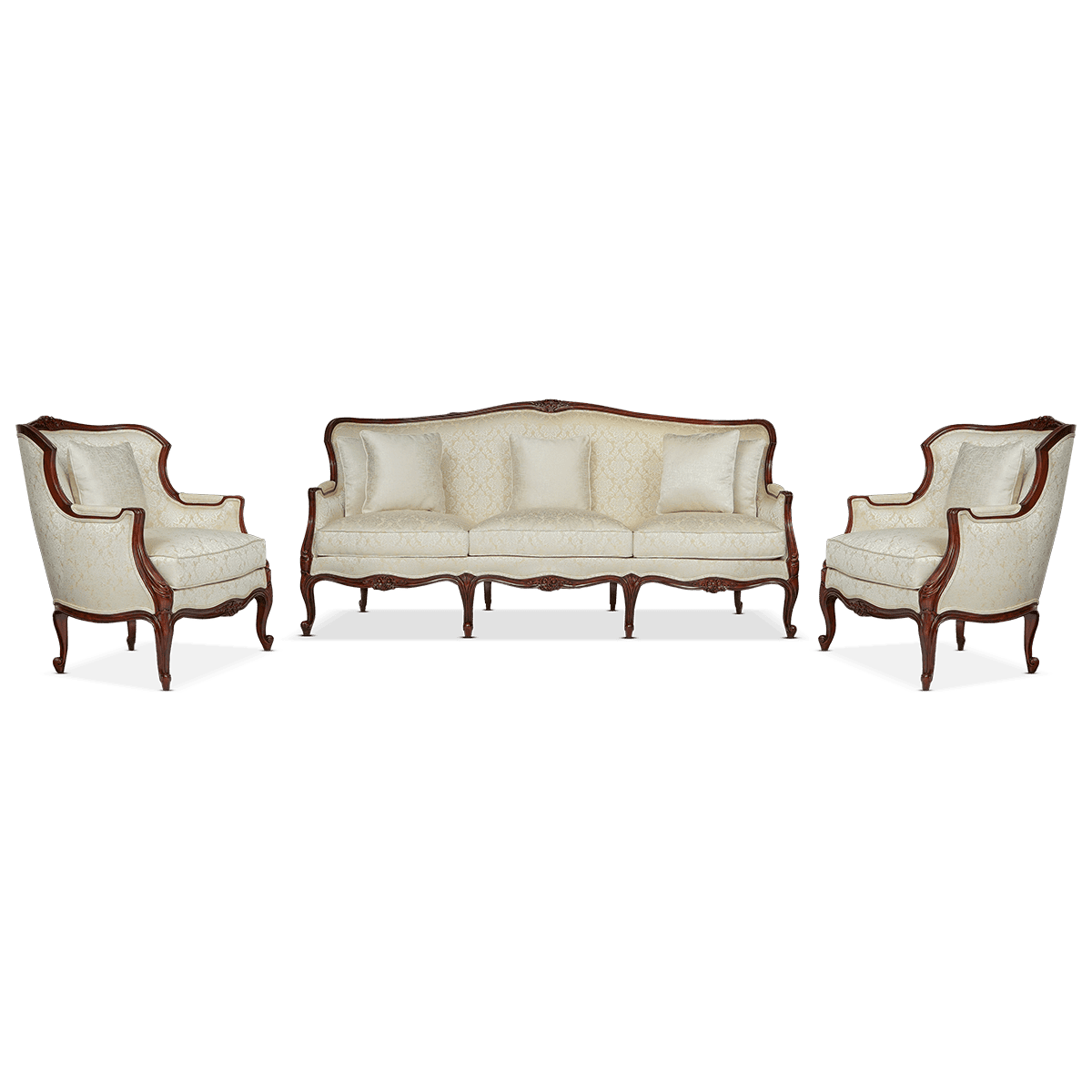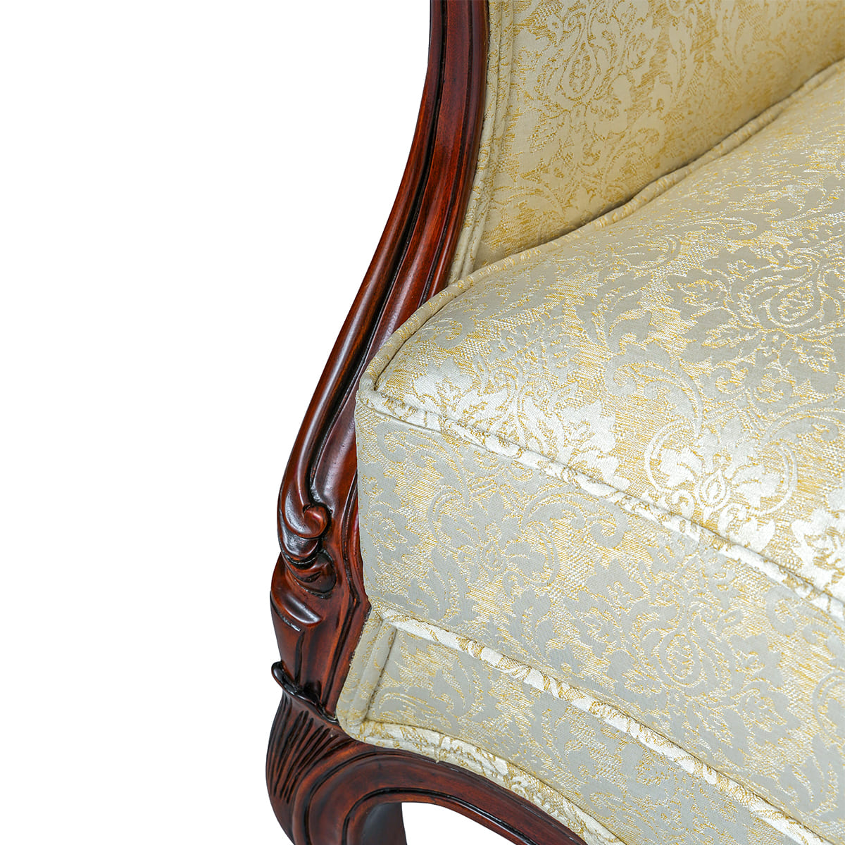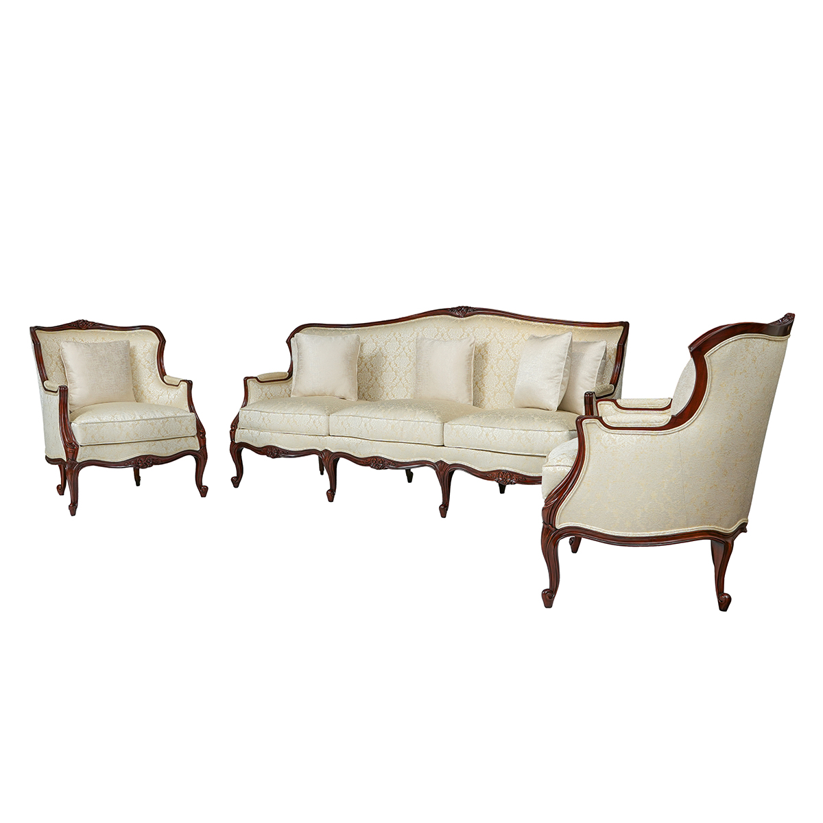 تُعد مجموعة أريكة جاين قطعة مذهلة مستوحاة من طراز لويس الخامس عشر، وتتميّز بتفاصيل زهرية دقيقة محفورة يدويًا وأرجل منحنية أنيقة. معروضة هنا بتشطيب جوزي غني وقماش مخملي فاخر، حيث يجمع أسلوب البرجير الفرنسي بين الرقي الكلاسيكي والحِرفية الخالدة