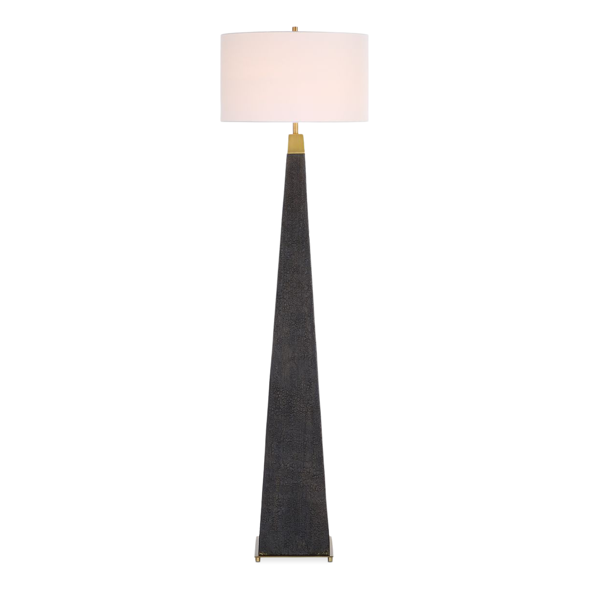 يتميّز مصباح لاذي الأرضي بقاعدة ذات تصميم متدرّج تحاكي مظهر الخشب المحروق المستوحى من تقنية **شو سوجي بان** التقليدية لحفظ الخشب، مع إبرازات أنيقة بتفاصيل نحاسية مطلية. يكتمل شكله بغطاء أسطواني صلب مصنوع من قماش كتان أبيض يمنح إضاءة هادئة ولمسة عصرية دافئة لأي مساحة.