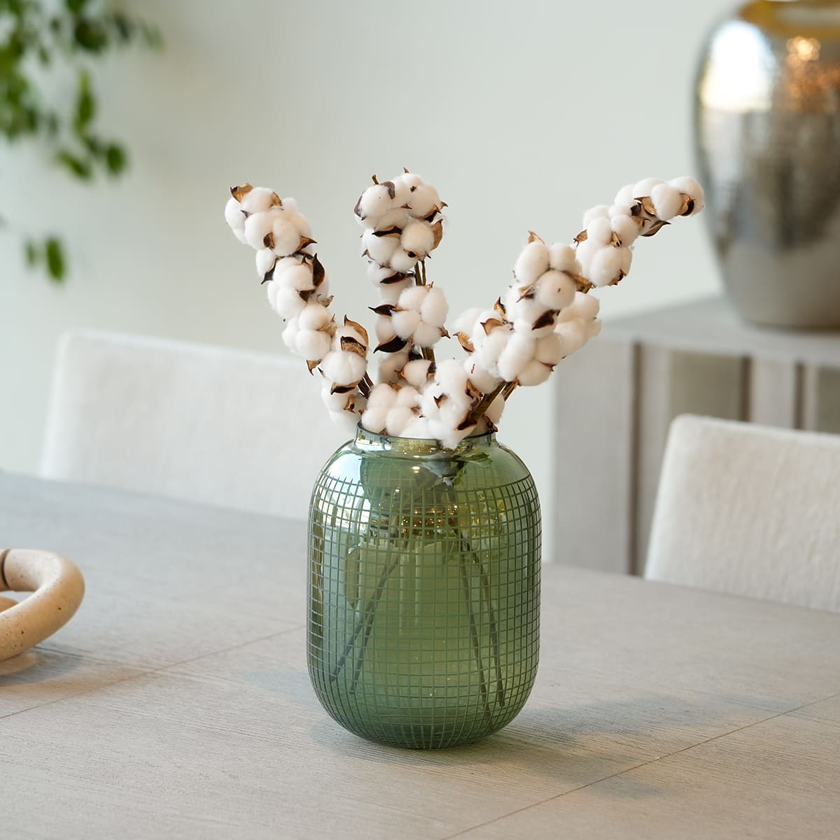 تجمع مزهريات موديلار بين الزجاج الرمادي المتدرج اللامع والمعدن البرونزي، مما يخلق تباينًا لافتًا بين الألوان. في الداخل، تتميز المزهريات بنقش شبكي محفور بدقة، مما يعزز التعقيد البصري للتصميم. صُنعت على أيدي حرفيين مهرة في صناعة الزجاج، وتتميز كل مزهرية بفرادتها، فلا توجد قطعتان متطابقتان، مما يعكس مستوىً استثنائيًا من الحرفية. تتوفر بثلاثة أحجام مختلفة.