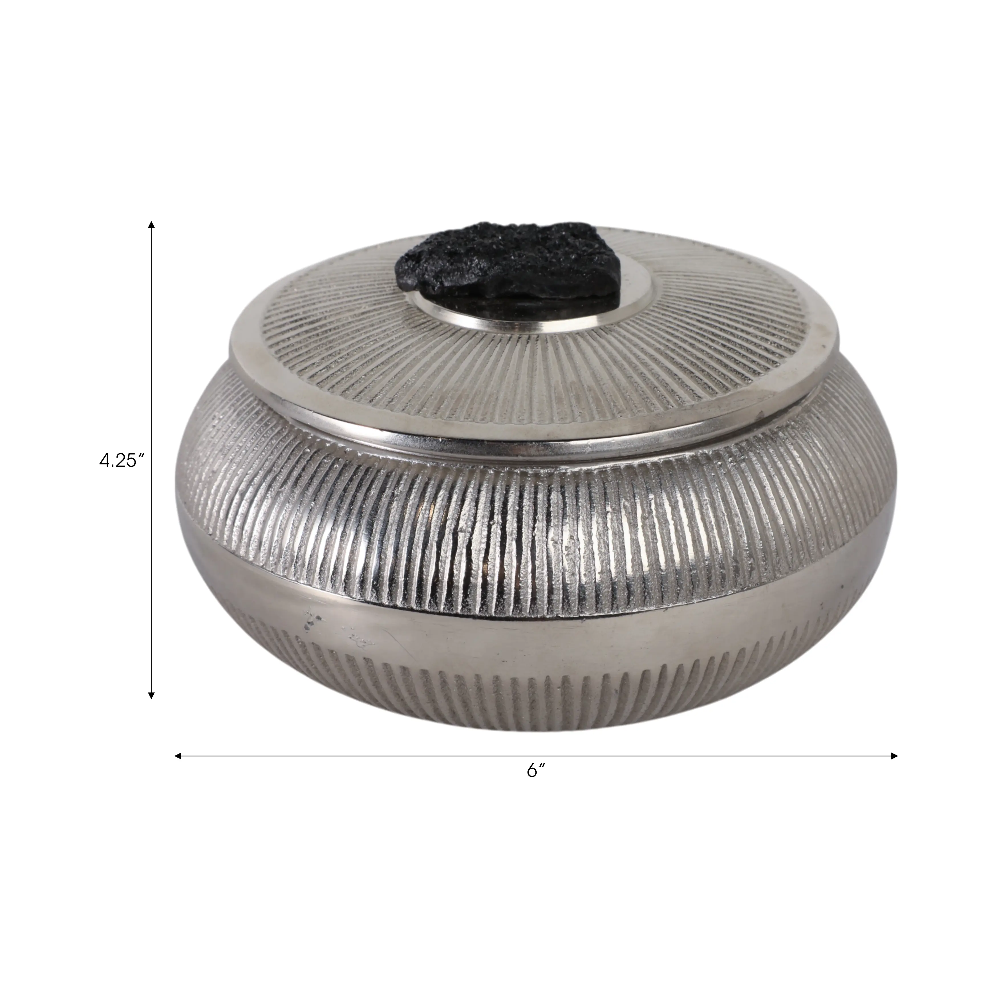 صندوق نوربورن الفضي الصغير يضفي لمسة بريق عصري على أي مساحة، فهو مصنوع من معدن عالي الجودة بتصميم نظيف وتشطيب فضي لامع، مما يجعله مناسباً لحفظ القطع الصغيرة أو لإضافة لمسة أنيقة إلى تنسيق الطاولات والأسطح.