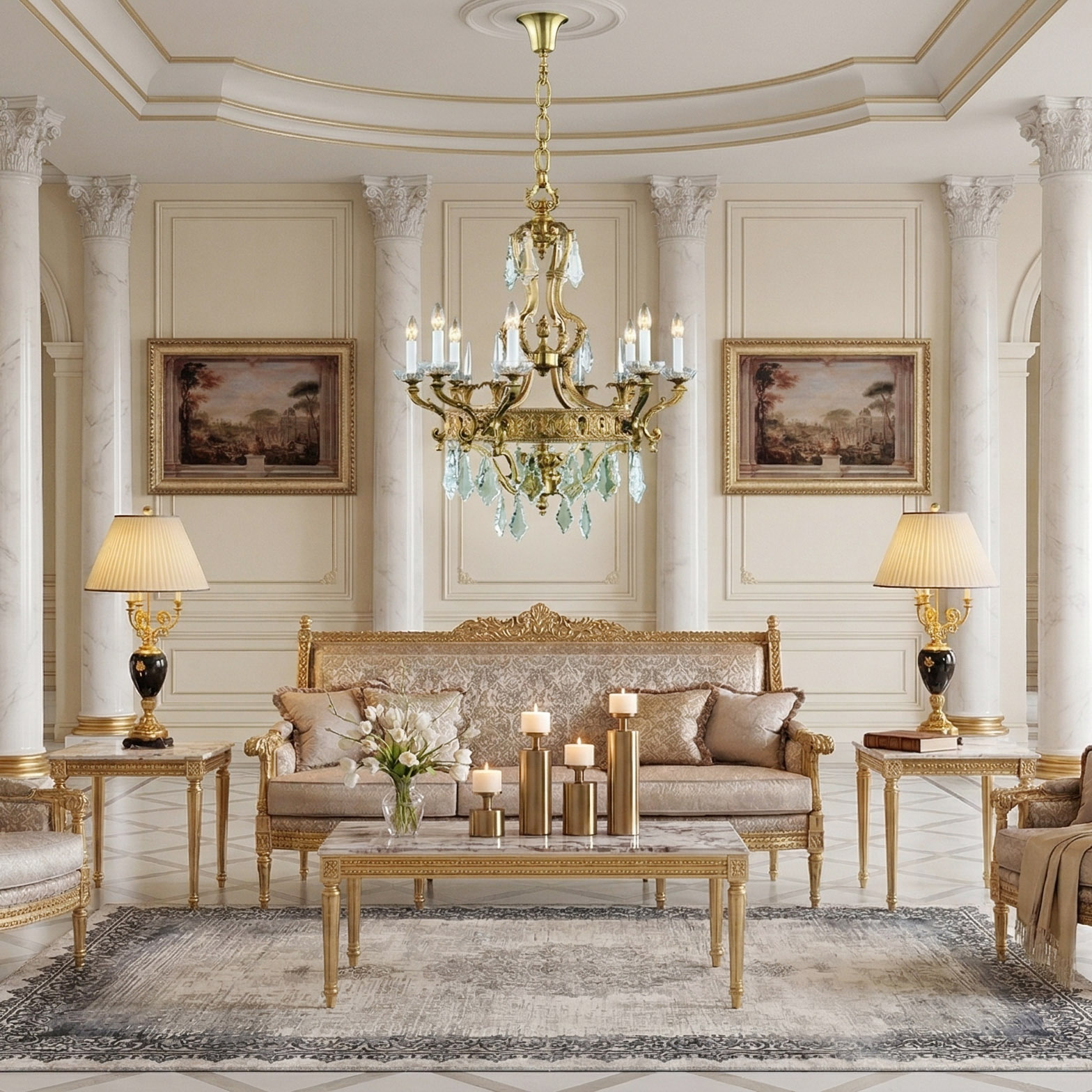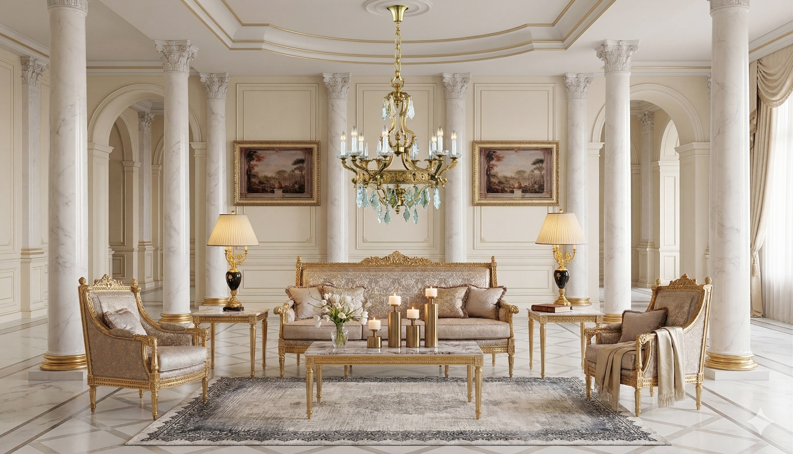 تعكس مجموعة أرائك أوليفييه فخامة التصاميم الكلاسيكية الراقية، حيث يتم تنفيذها باستخدام مواد عالية الجودة تشمل الأخشاب الصلبة والأقمشة الفاخرة، مع تشطيبات فاخرة مثل أوراق الذهب وعرق اللؤلؤ. تُصنّع القطع بالكامل في إيطاليا تحت علامة ArteArredo Schleret، التي تجسّد تميّز الحرفية الإيطالية الممزوجة بالأناقة الفرنسية. ترتكز المواصفات على الحرف التقليدية الدقيقة والاهتمام الفائق بالتفاصيل، مع اعتماد تقنيات تصنيع عريقة مثل فنون النجارة الرفيعة والتطعيم (الماركيتري)، لضمان جودة بناء استثنائية. وتكتمل الفخامة بتشطيبات أوراق الذهب المعتّقة وسطح رخامي من نوع كالكاتا غولد.