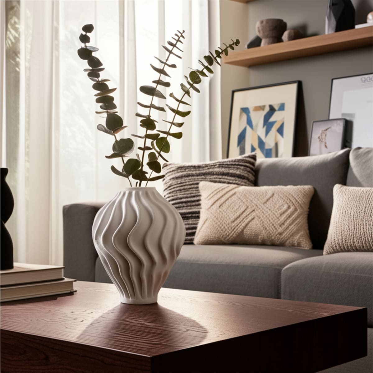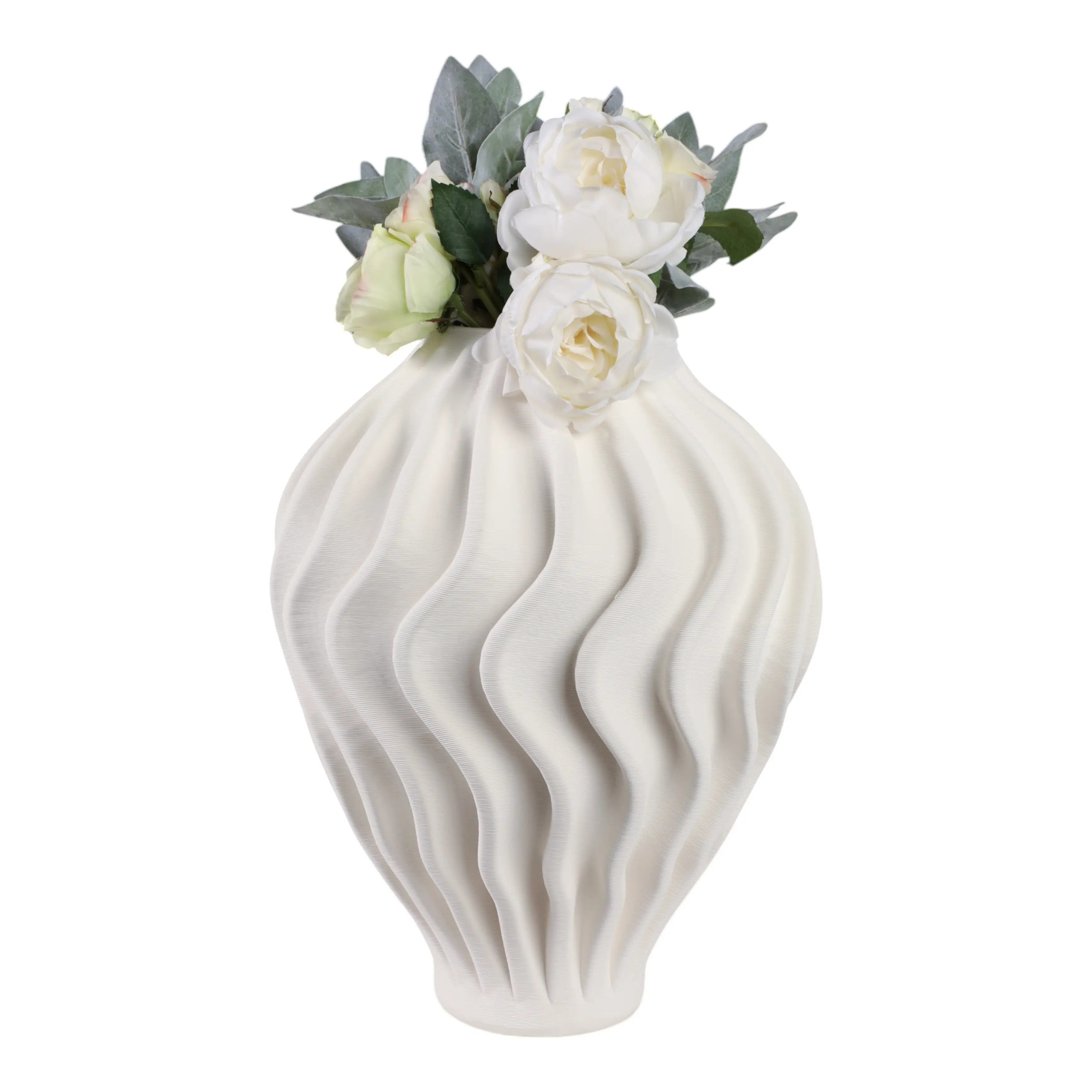 مزهرية أوفالتا الكبيرة ترتقي بالتفاصيل العصرية بفضل تصميمها النحتي المصنوع بدقة باستخدام تقنية الطباعة ثلاثية الأبعاد بالبورسلان. تتميّز بانحناءات فنية ناعمة وملمس خطي دقيق يبرز مهارة الحرفية في شكلها الحديث. ويمكن استخدامها كقطعة مميزة مستقلة أو مع أغصان نباتية جافة، لتمنح أي مساحة لمسة معمارية راقية وأناقة مصقولة.