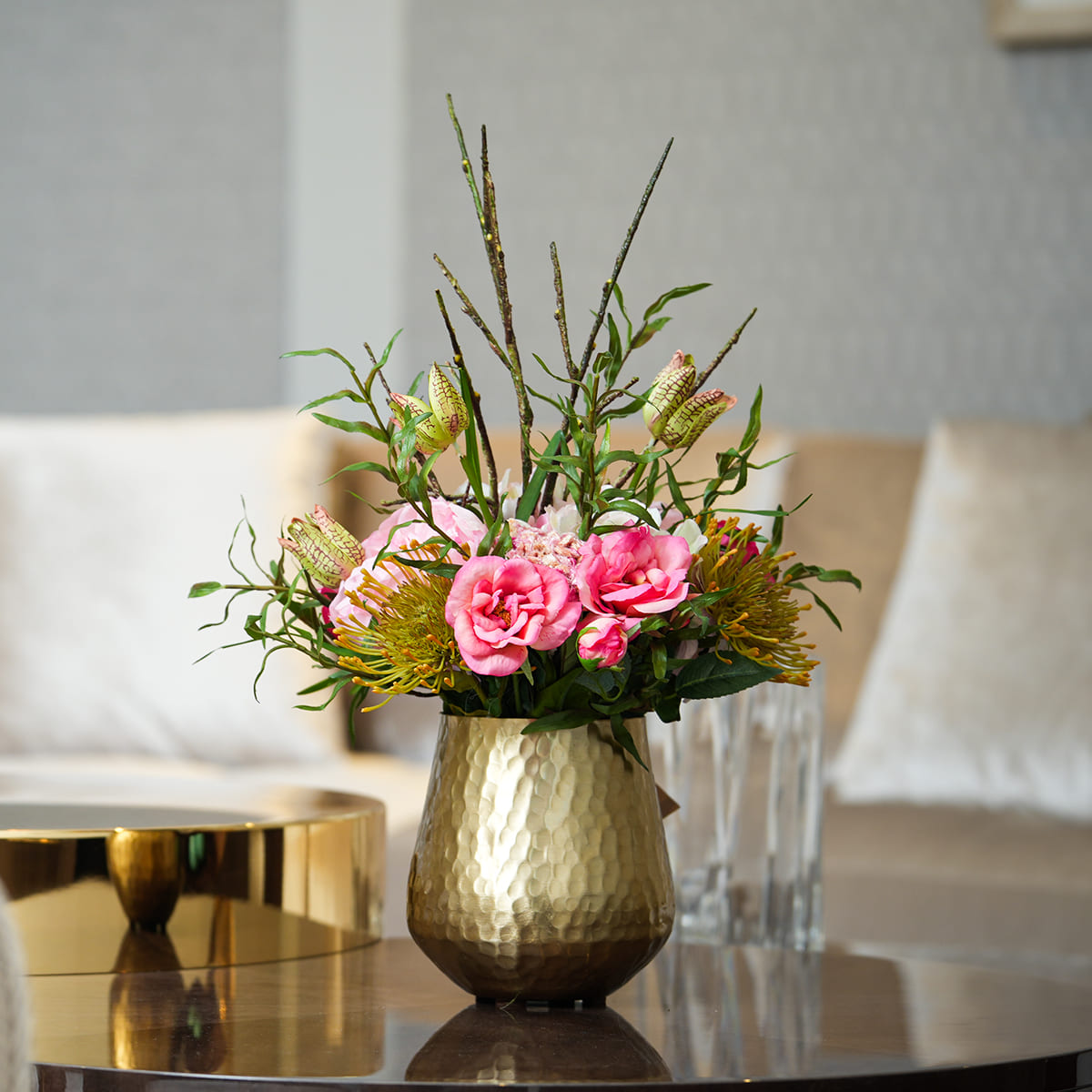 Peony & protea faux arrangement