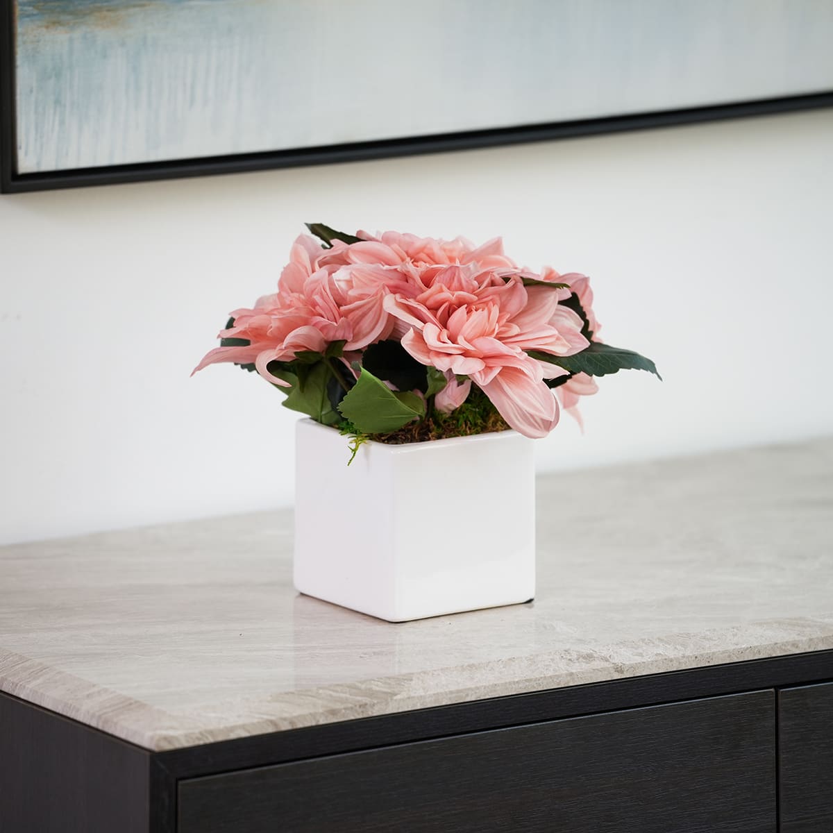 أضف لمسة من الأناقة مع زهرة الداليا المرتبة بأناقة داخل مزهرية زجاجية. بارتفاع ٢٣ سم، يُعد هذا التصميم الصناعي مثالياً لإضفاء إشراقة على المكاتب أو الرفوف أو أسطح الحمّام. بتلات واقعية وأوراق غنية تمنح مساحتك لمسة خالدة من الجمال، مع بقاء مظهرها منتعشاً ومشرقاً طوال العام من دون أي عناية.