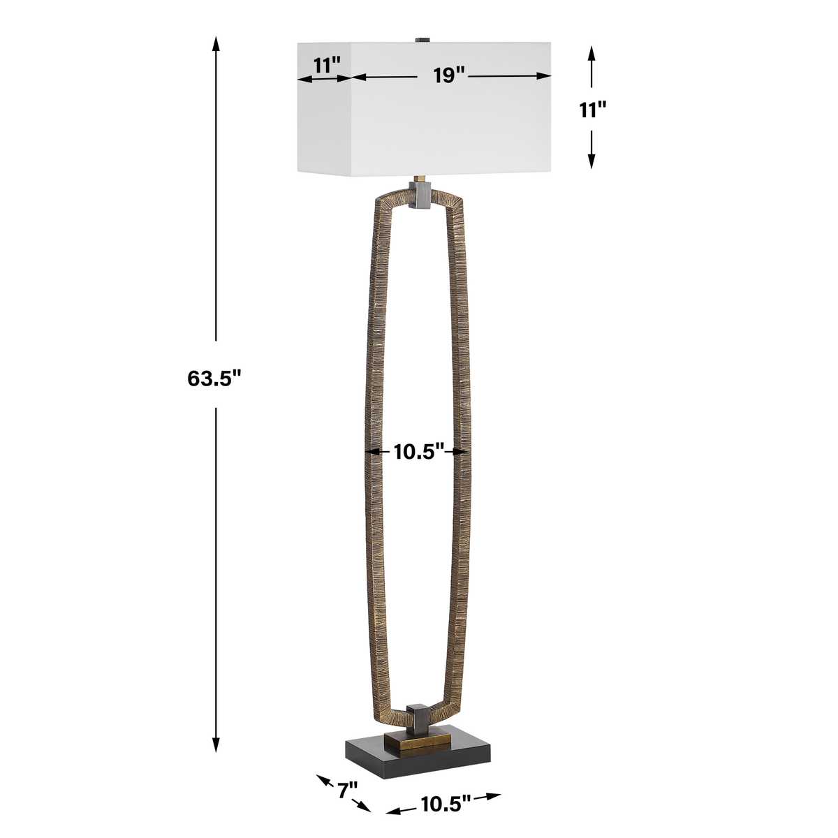 يتميّز مصباح ريليك الأرضي بسحر بوهيمي جذاب بفضل تشطيبه الذهبي المعتّق بعمق والنقوش اليدوية التي تزين قاعدته الفريدة ذات الخطوط المتوازية. تكمّله تفاصيل باللون البرونزي الداكن وقاعدة من رخام أسود تضيف ثباتًا وأناقة راقية. يُرافقه غطاء بيضاوي الشكل مصنوع من كتان أبيض صلب، ليمنح إضاءة متوازنة وطابعًا فنيًا مميزًا لأي مساحة.