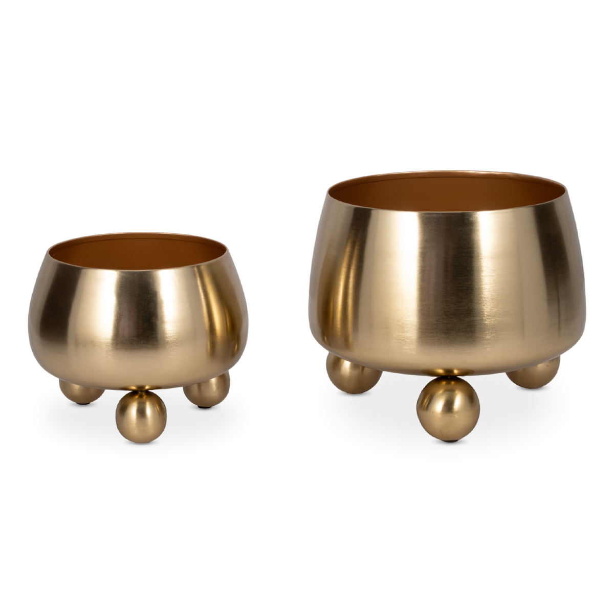 الأصص المعدنية الدائرية المزودة بكرات سفلية تضفي طابعاً صناعياً عصرياً على النباتات الداخلية، فهي مصنوعة من المعدن ومصممة بأقدام كروية منحوتة ترفع من أناقة شكلها المعاصر. قطعة مثالية لإضافة لمسة جمالية حديثة على أي مساحة.