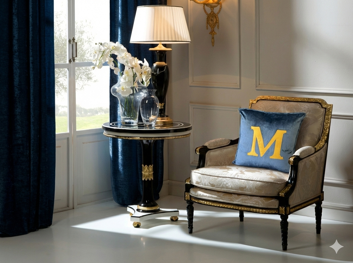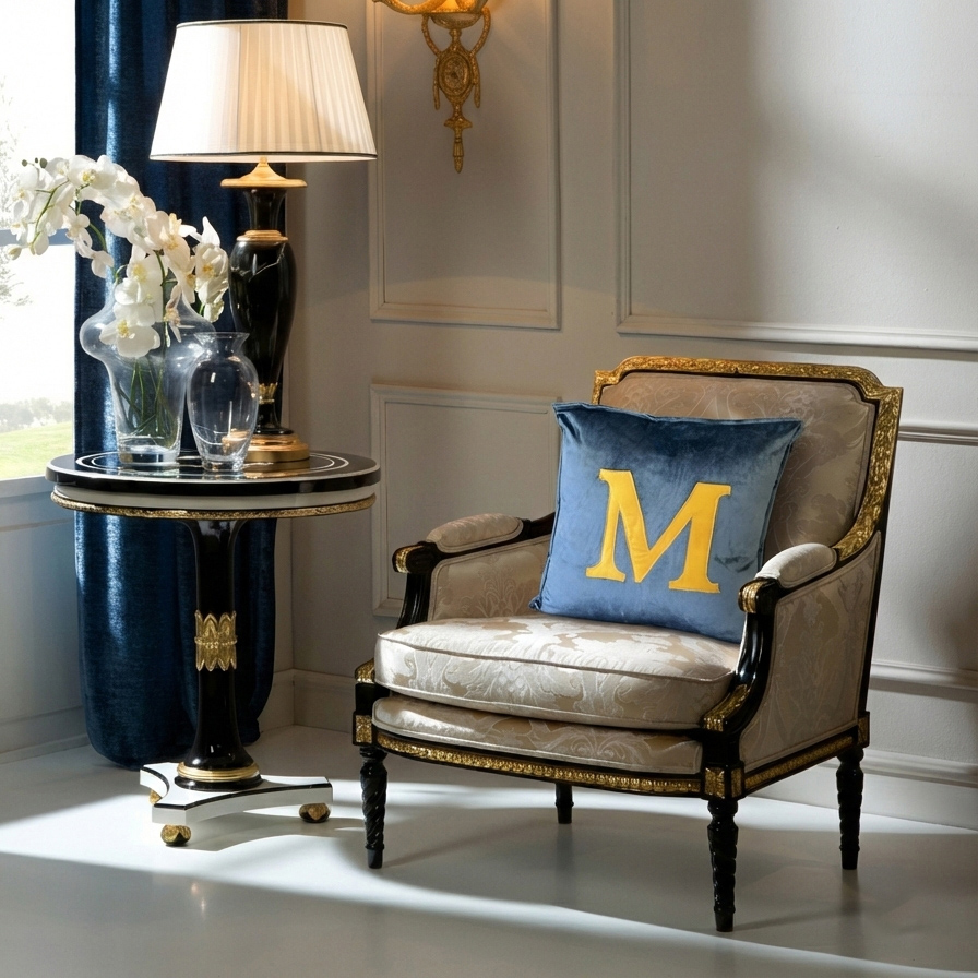 وسادة رمي مربعة سينجولار باللون الأزرق هي قطعة ديكورية راقية تضيف عمقاً وأناقة إلى مختلف المساحات الداخلية. صُنعت من قماش فاخر بدرجات الأزرق النيلي والذهبي لتمنح تبايناً بصرياً جذاباً مع إحساس ناعم ومريح على الأرائك أو الكراسي أو الأسرة. يضفي شكلها المربع ولوحتها اللونية الأنيقة تنسيقاً متكاملاً، لتكون إكسسواراً متعدد الاستخدامات ينسجم مع الديكورات العصرية والكلاسيكية بلمسة مُصقلة.
