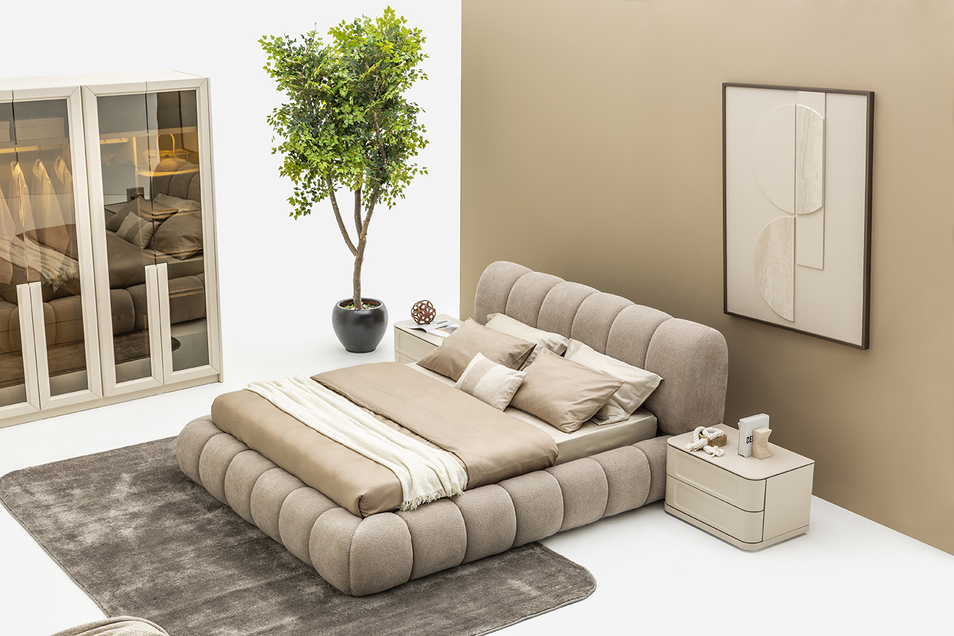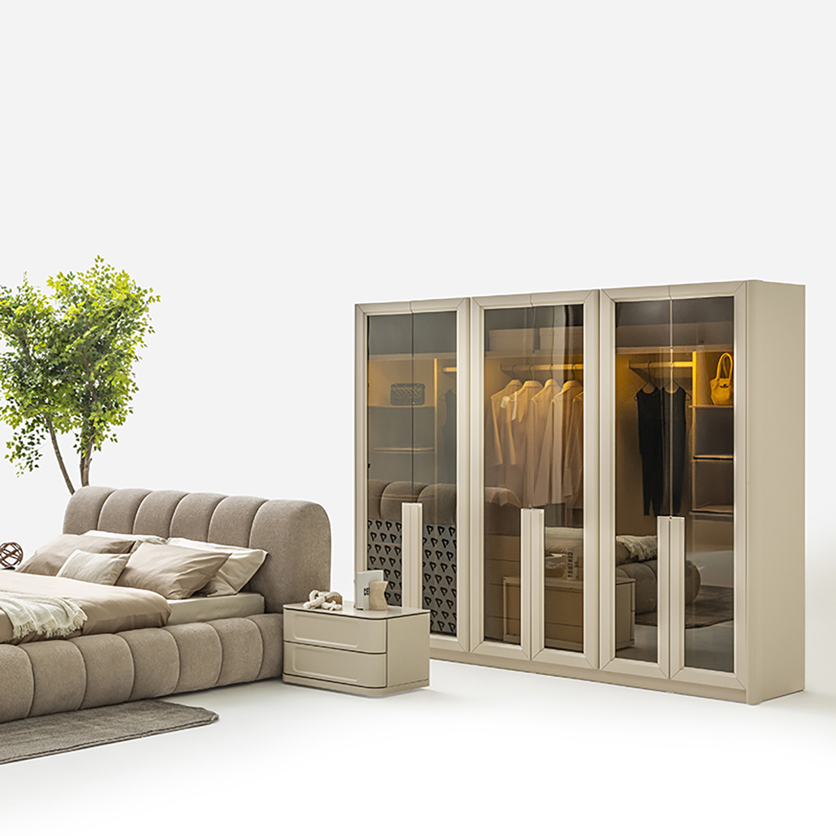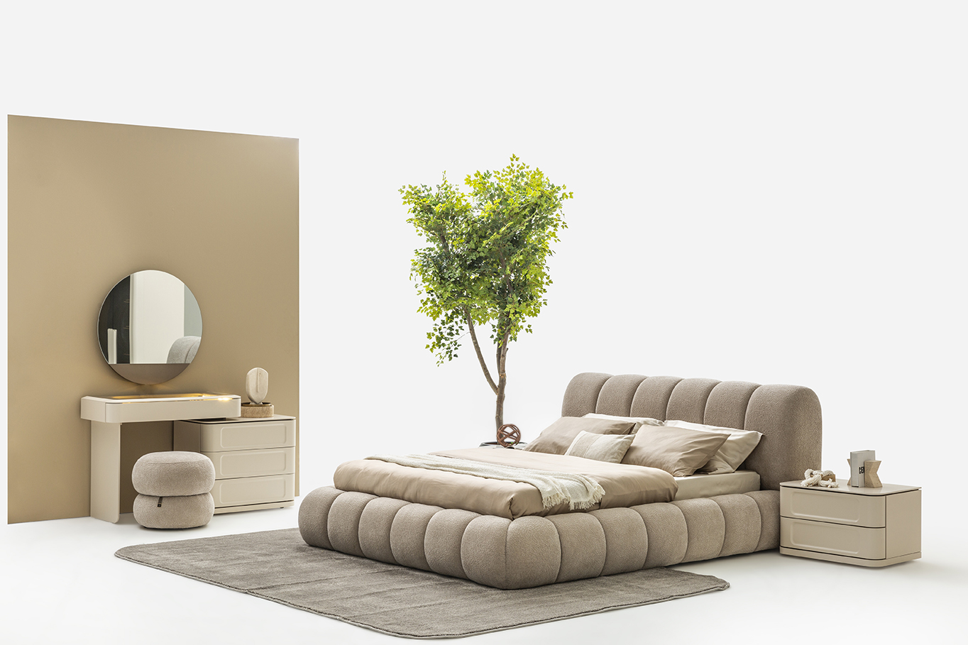 تجسّد مجموعة غرف النوم سوهـو مزيجًا متناغمًا بين الراحة والأناقة العصرية، حيث تتميز بتصميم حديث يركّز على التفاصيل الراقية والوظائف العملية، وتجمع بين الطابع العصري والأناقة المريحة بلوح رأس منجد ناعم يضفي لمسة فخمة، وتفاصيل خشبية دافئة مدعومة بإضاءة LED مدمجة تمنح أجواء مريحة ودافئة. تضم المجموعة خزانة واسعة توفر مساحة تخزين منظمة، وطاولات جانبية أنيقة، وتسريحة عملية تساعد على الحفاظ على ترتيب الغرفة وجمالها دون فوضى، كما صُنعت من مواد متينة وبحرفية عالية لضمان جودة طويلة الأمد ومظهر راقٍ يدوم مع الزمن.