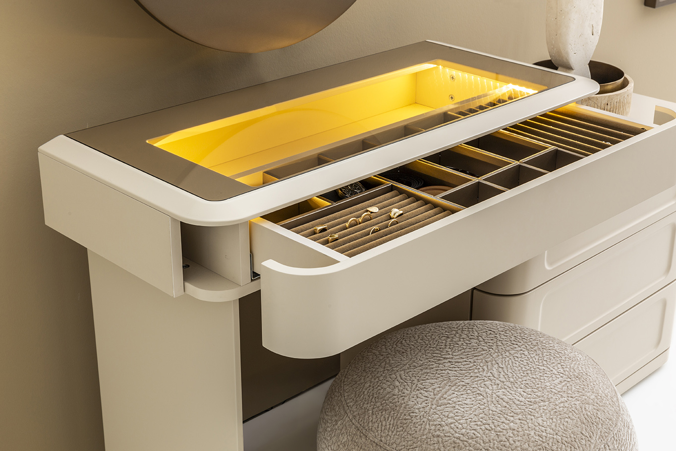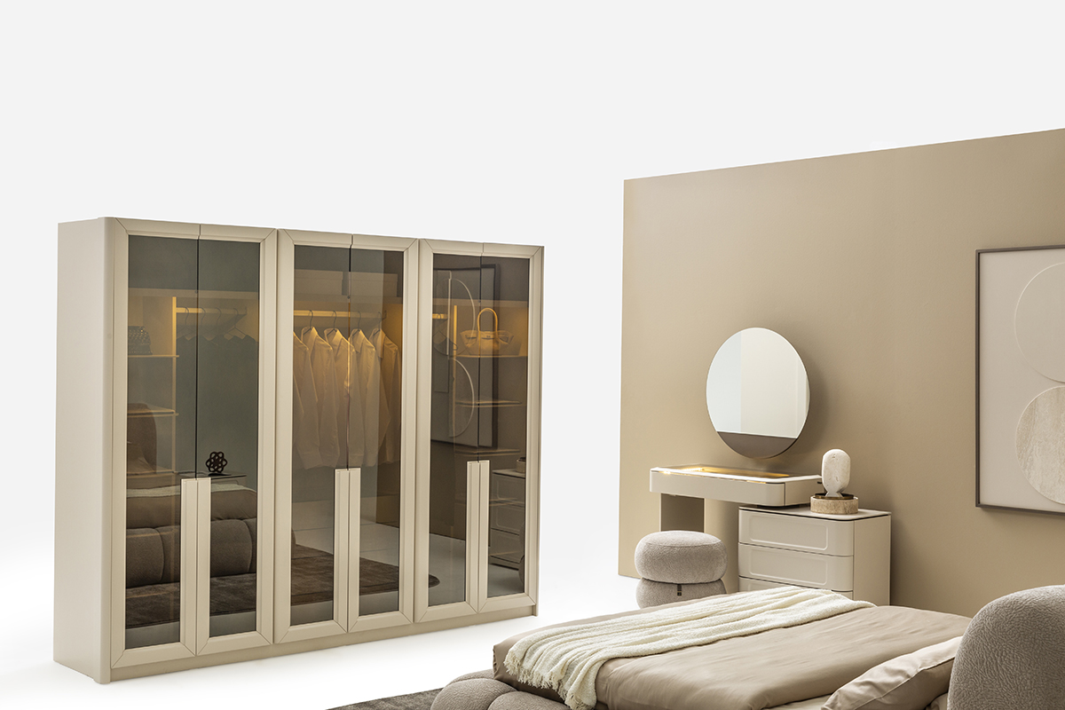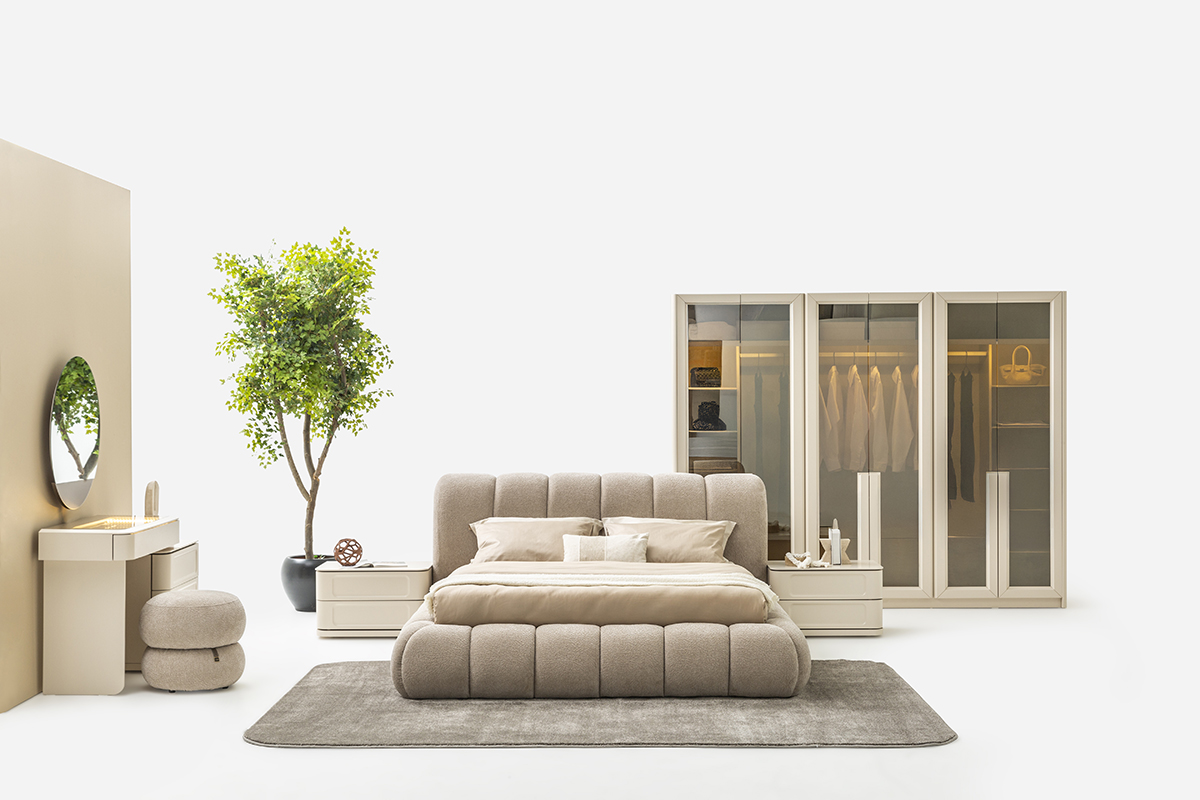 تجسّد مجموعة غرف النوم سوهـو مزيجًا متناغمًا بين الراحة والأناقة العصرية، حيث تتميز بتصميم حديث يركّز على التفاصيل الراقية والوظائف العملية، وتجمع بين الطابع العصري والأناقة المريحة بلوح رأس منجد ناعم يضفي لمسة فخمة، وتفاصيل خشبية دافئة مدعومة بإضاءة LED مدمجة تمنح أجواء مريحة ودافئة. تضم المجموعة خزانة واسعة توفر مساحة تخزين منظمة، وطاولات جانبية أنيقة، وتسريحة عملية تساعد على الحفاظ على ترتيب الغرفة وجمالها دون فوضى، كما صُنعت من مواد متينة وبحرفية عالية لضمان جودة طويلة الأمد ومظهر راقٍ يدوم مع الزمن.