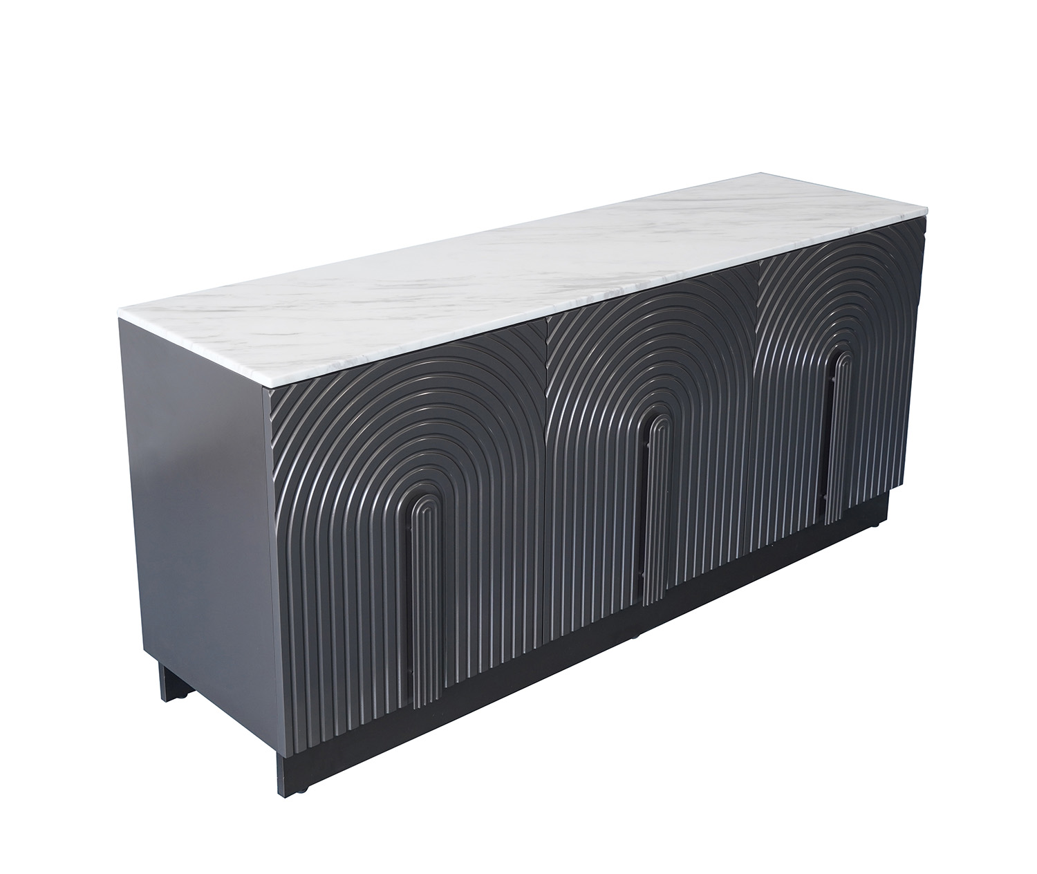 خزانة جانبية "سولار" أنيقة وعصرية، مصنوعة من مزيج راقي من الرخام والخشب متوسط الكثافة (MDF) والمعدن، مما يضفي لمسة من الرقي على الديكورات الداخلية العصرية. سطحها مصنوع من رخام فولاكاس الأبيض الطبيعي، المعروف بعروقه الرقيقة وسطحه المضيء الذي يرتقي بالجمال العام. هيكلها مصنوع من الخشب متوسط الكثافة (MDF) مع طلاء بني داكن عميق، مما يخلق تباينًا دافئًا مع الرخام الفاتح، بينما القاعدة المعدنية مطلية بمسحوق بني داكن متناسق لتعزيز الثبات ولمسة عصرية أنيقة. قطعة تخزين فاخرة مصممة لإثراء مساحات الطعام والمعيشة على حد سواء بأناقة وبساطة.