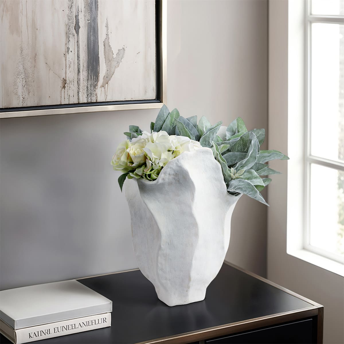 مزهرية سبادينا الكبيرة تمزج بين الأناقة الخالدة والحرفية العصرية، فهي مصنوعة من خامة فاخرة تمنحها ملمساً ناعماً يشبه البورسلان وتشطيباً راقياً يعزز جمال شكلها الانسيابي. يضفي تصميمها البسيط وملمسها العضوي الناعم حضوراً متناسقاً وأنيقاً يجعلها قطعة مميزة تناسب الكونسول والمداخل ومساحات المعيشة. يمكن عرضها منفردة كعنصر لافت أو تنسيقها مع سيقان نباتات جافة طويلة لإطلالة عصرية ملفتة.