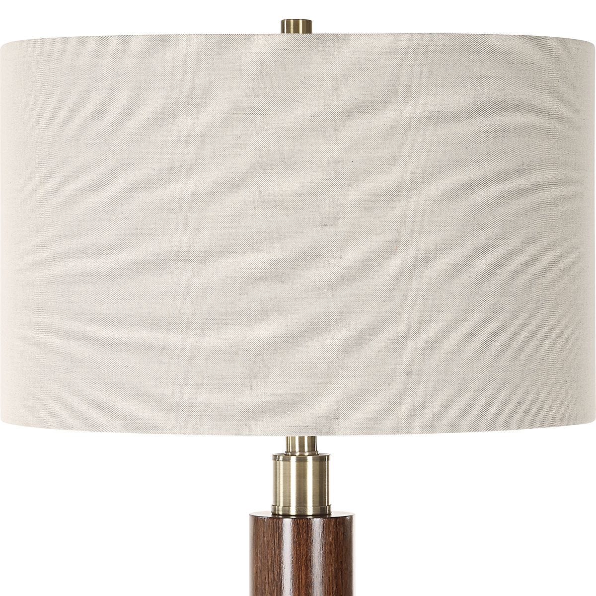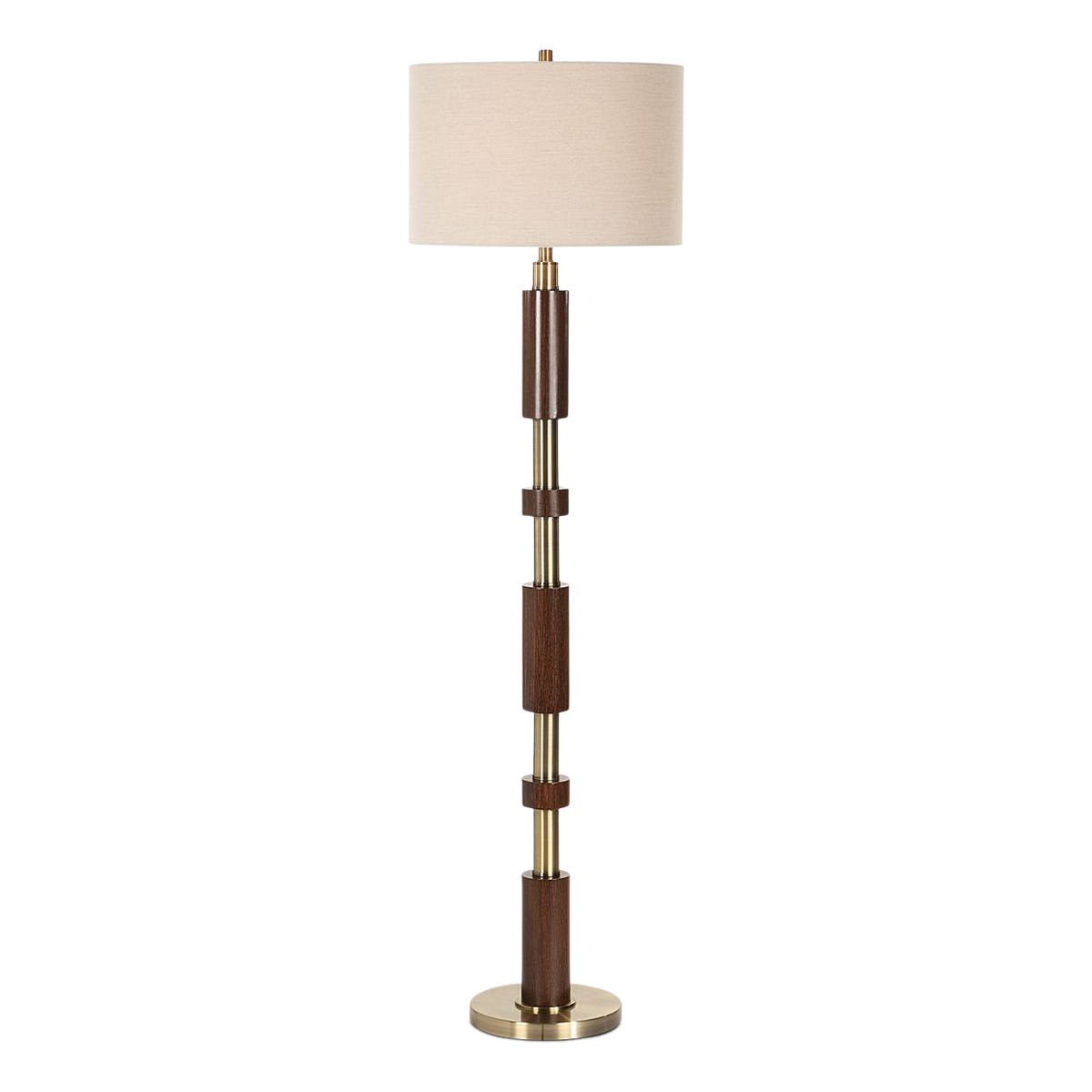 يتميز مصباح ستاكد الأرضي بتصميم لافت يجمع بين أسطوانات خشبية متعاقبة وتفاصيل مطلية بالنحاس، مما يمنحه طابعًا عصريًا مستوحى من أسلوب منتصف القرن. يكتمل تصميمه بغطاء أسطواني صلب مصنوع من قماش كتان أبيض نقي، ليضفي مظهرًا أنيقًا وإضاءة متوازنة على أي مساحة.
