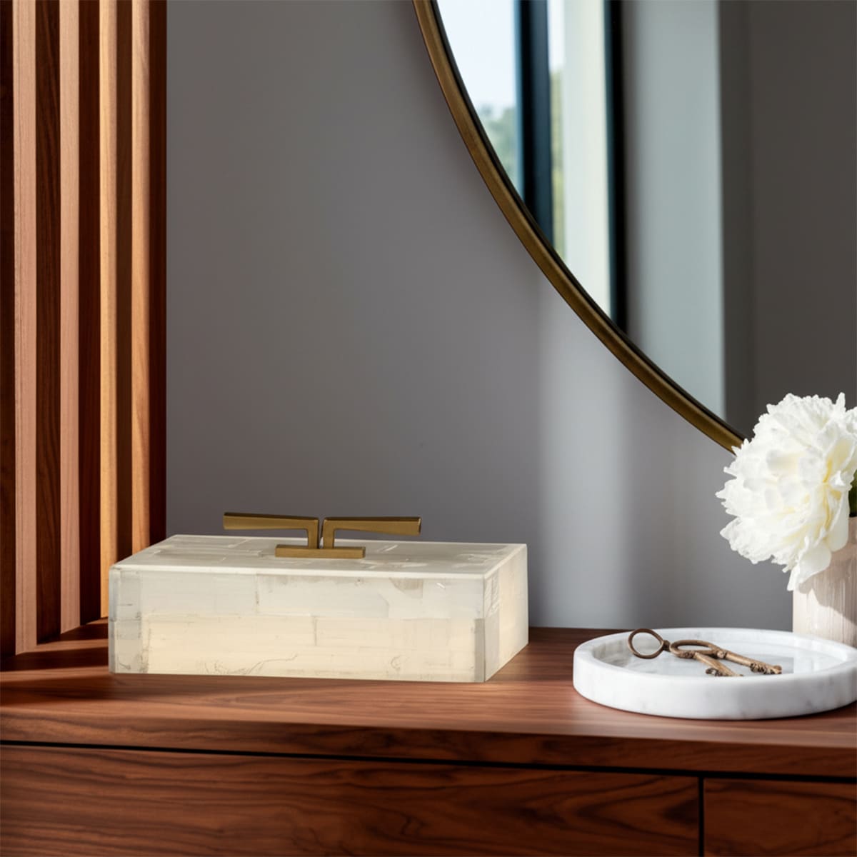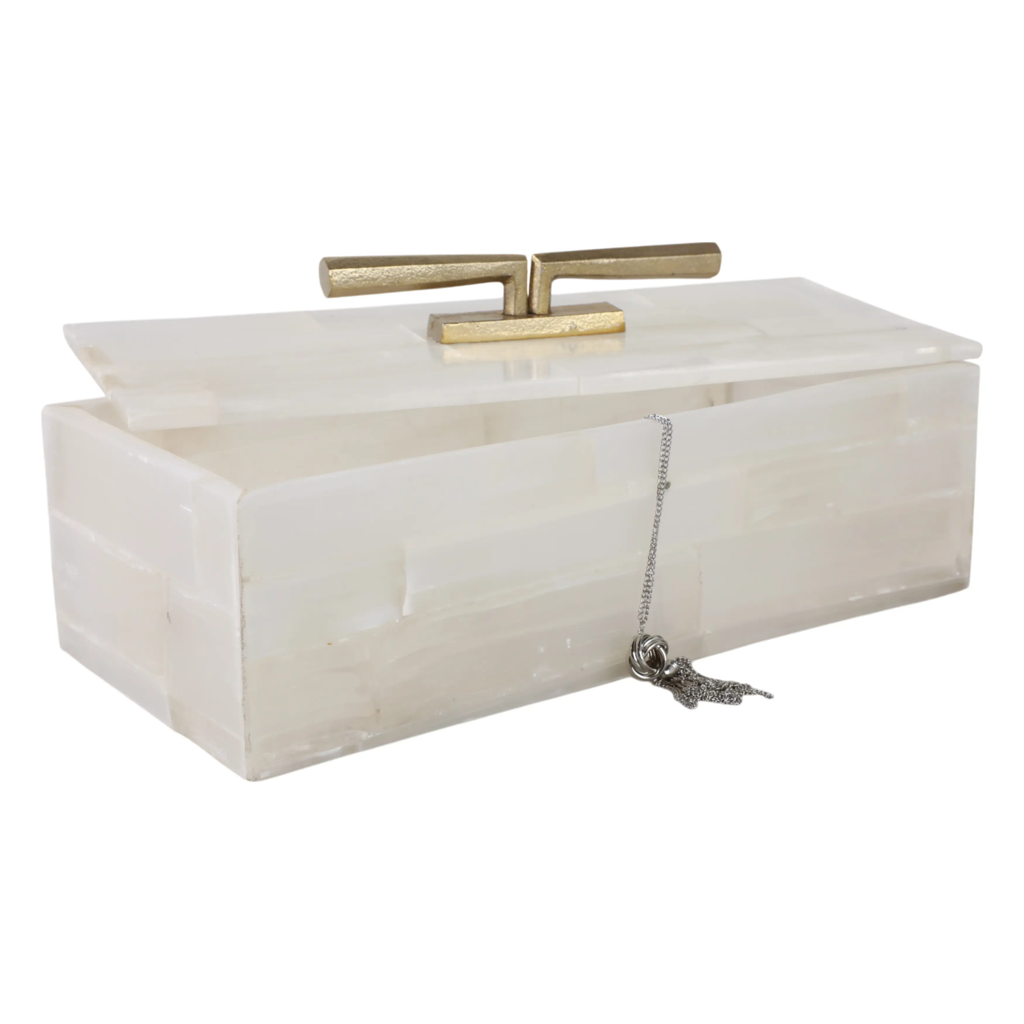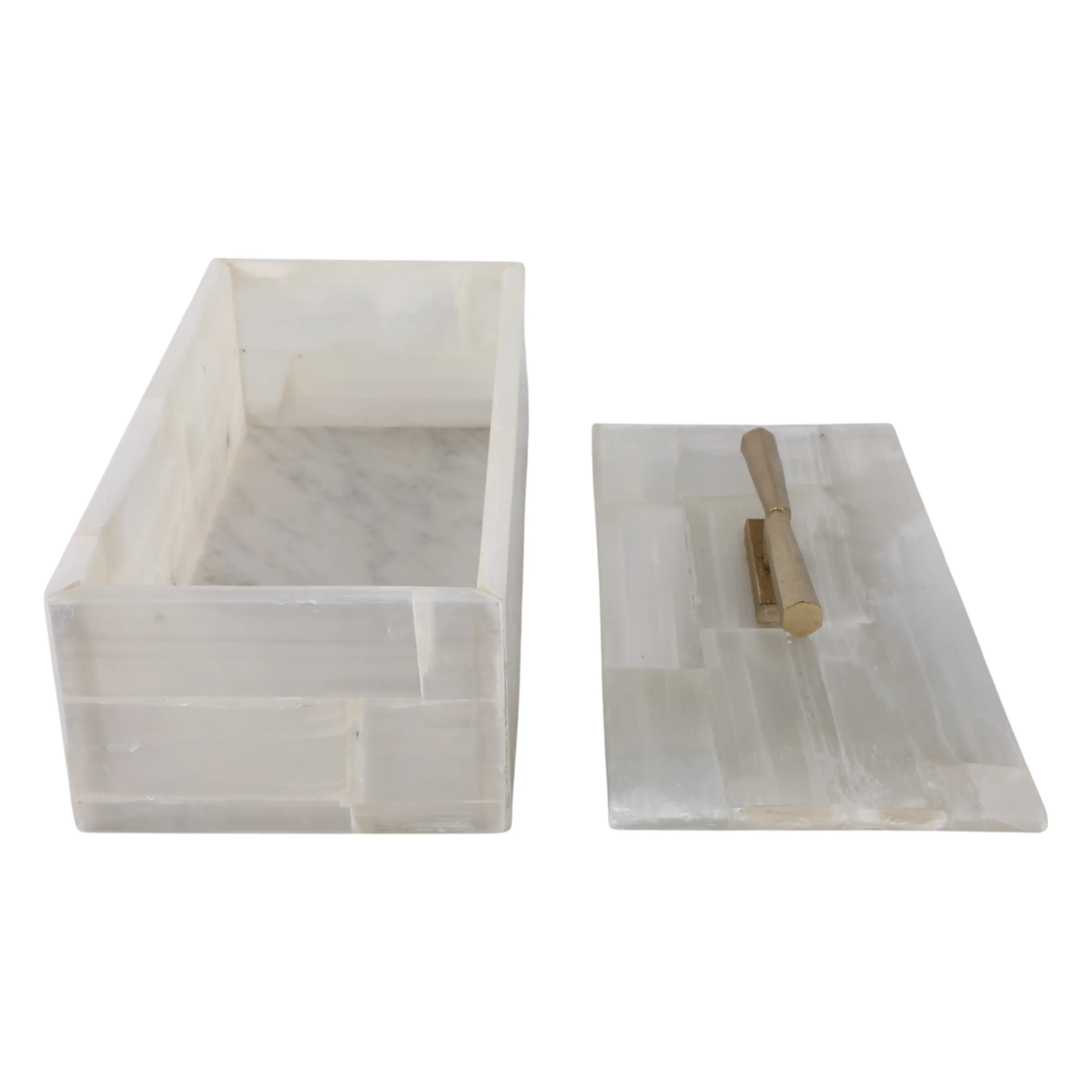 صندوق سوري المصنوع من حجر السيلينيت يتميّز بتفاصيل حجرية لافتة تضيف لمسة طبيعية راقية إلى أي مساحة. قطعة مصممة بعناية لحفظ المقتنيات أو لإضفاء لمسة فاخرة على تنسيق الطاولات والأسطح.