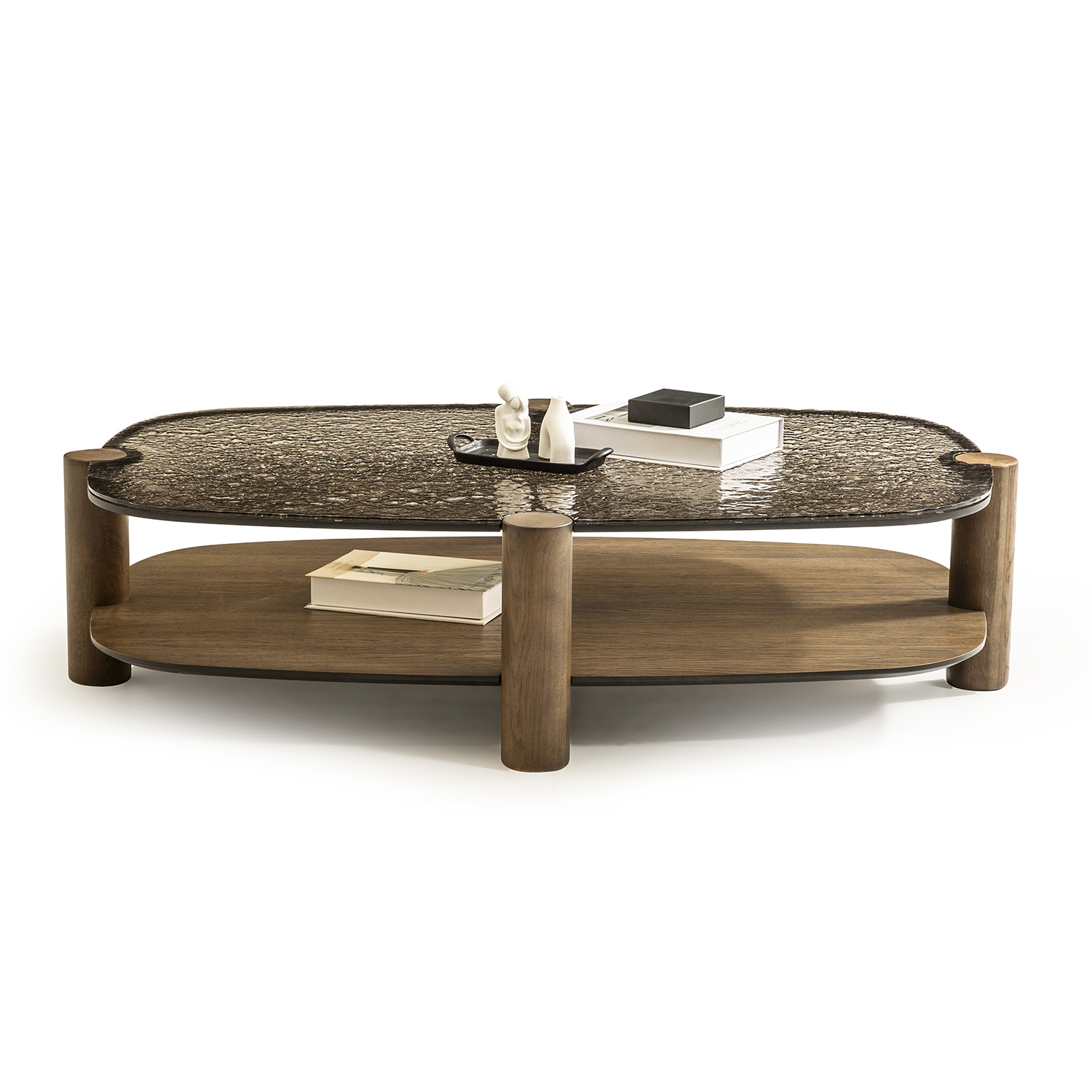 طاولة قهوة تايغرِس: تتميّز هذه الطاولة بتصميم يجمع بين العصرية والدفء، حيث صُنعت من مزيج راقٍ من زجاج مُقوّى وخشب الزان، ليقدّم حضوراً أنيقاً في أي مساحة معيشة. يبرز السطح الزجاجي الشفاف جمال القاعدة الخشبية المصممة بلون برونزي-خشبي يمنح عمقاً وأناقة إضافية، مما يجعل القطعة لمسة فاخرة تُكمل ديكور المكان بانسجام راقٍ.