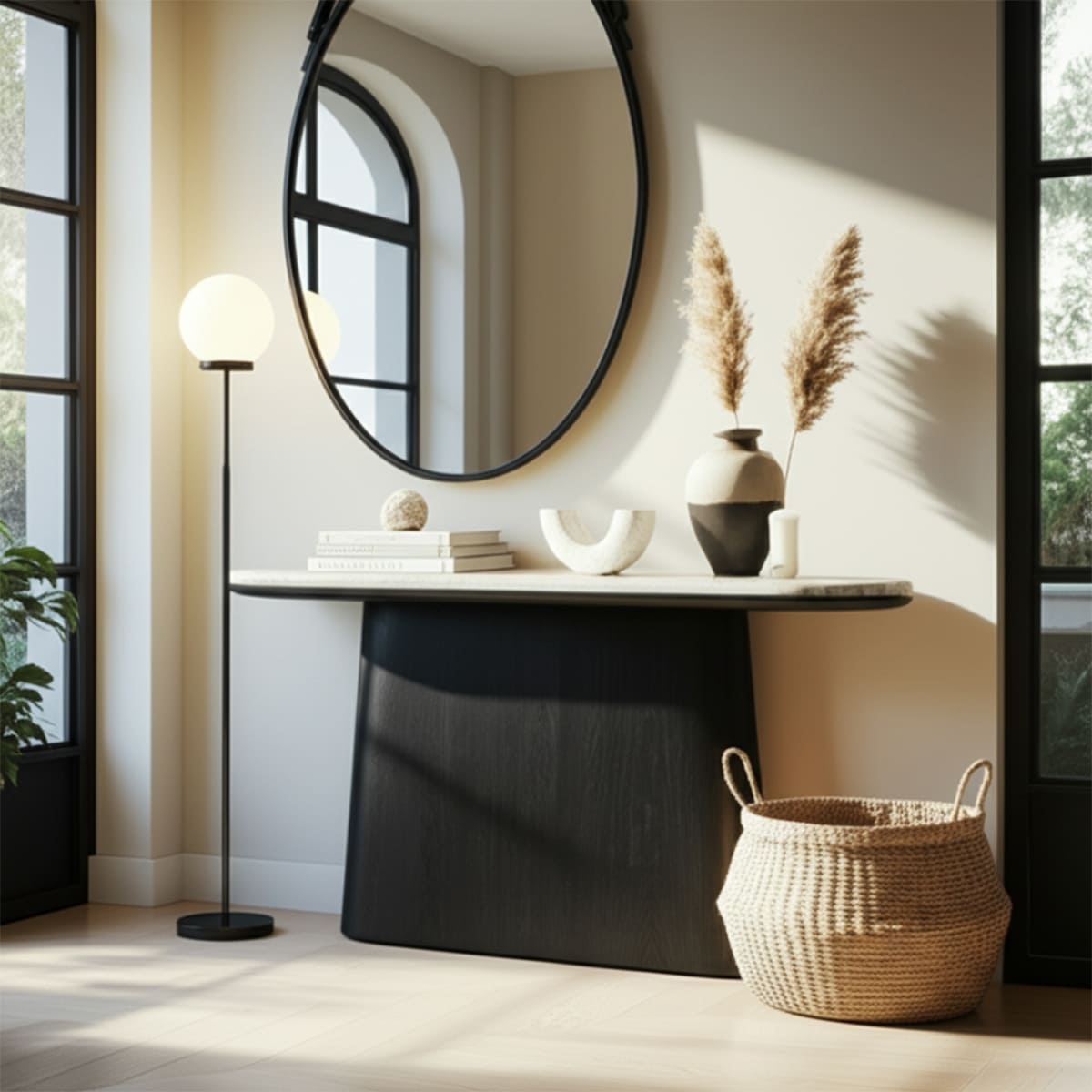 طاولة الكونسول فازرا من حجر الباندا تمتزج فيها فخامة حجر الباندا مع دفء خشب المانجو، لتقدّم تبايناً لافتاً يجمع بين الملمس الغني والحرفية المتقنة. يمنح هذا المزيج القطعة طابعاً فنياً مميزاً يبرز جمالها ويجعلها إضافة راقية لأي مدخل أو مساحة معيشة، بتصميم يجمع بين الجرأة والأناقة الطبيعية.