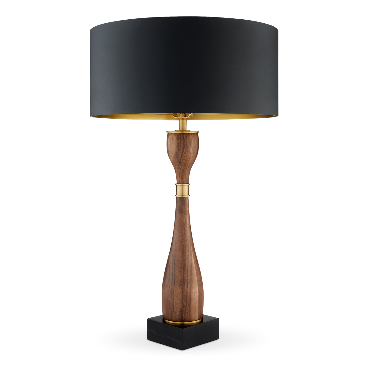 مصباح الطاولة فينيتا، الذي استُلهم اسمه من الكلمة البرتغالية التي تعني “المزاجي”، يضيف لمسة درامية راقية إلى أي مساحة. صُنع من خشب الأكاسيا الصلب بتشطيب بلون الجوز، ويتميّز بتفاصيل معدنية من النحاس الأصفر وقاعدة من الجرانيت الأسود. يجمع الغطاء المعدني الأسود غير اللامع مع الداخل المطلي بالنحاس بين الدفء المريح والأناقة العصرية المتقنة.