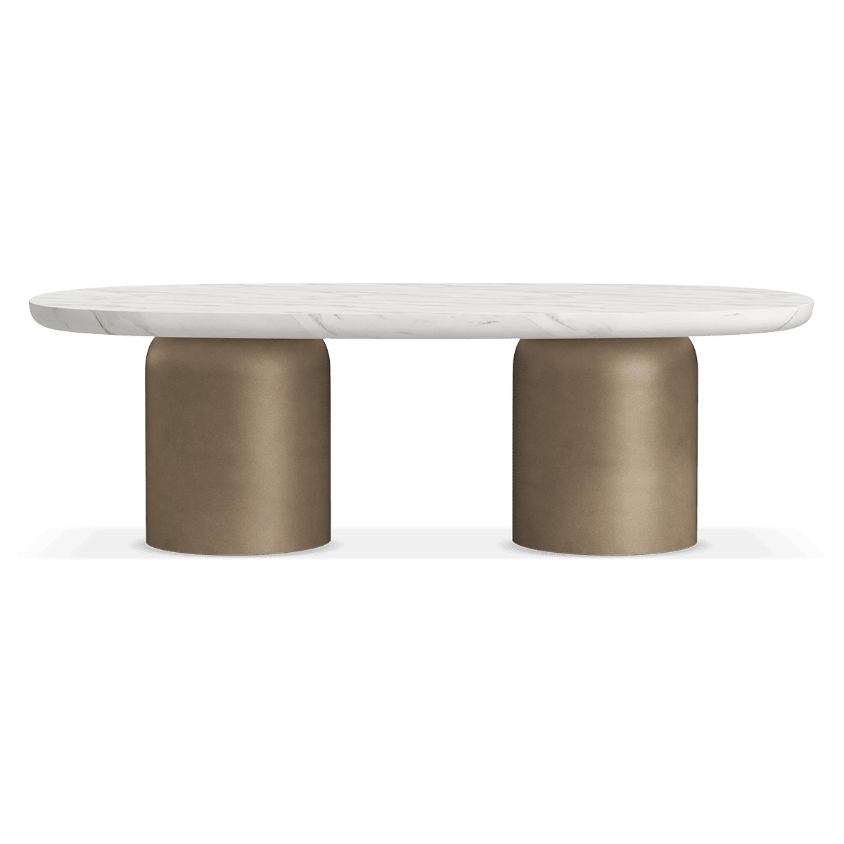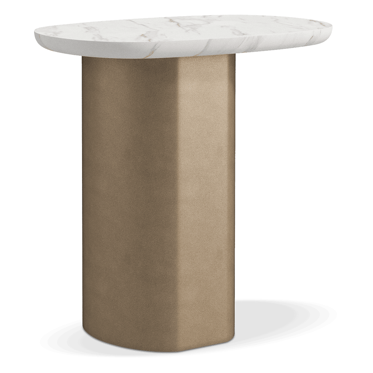 طاولة جانبية فيرج من إيه آر تي فيرتشر تتميّز بسطح رخامي أملس ومصقول تبرز فيه العروق الطبيعية المميزة، ويتكامل بأناقة مع الانحناءات الناعمة لشكلها البيضاوي. وتضفي القاعدة المعدنية النحتية بتشطيب معدني دافئ لمسة معاصرة راقية، لتشكّل قطعة أكسِسوار فاخرة توازن بين البعد الفني والتصميم العملي بأسلوب مُصقَل وأنيق.