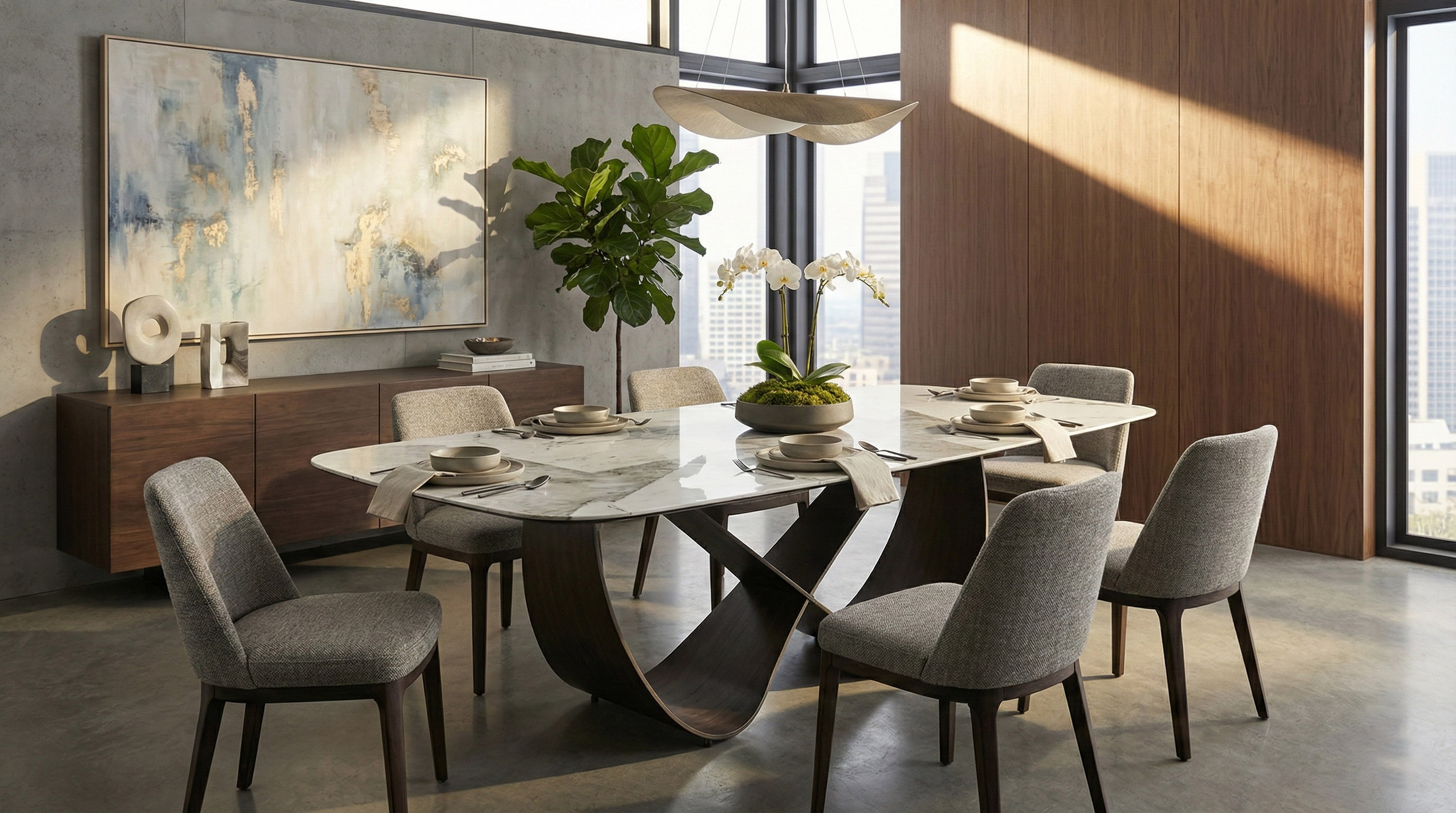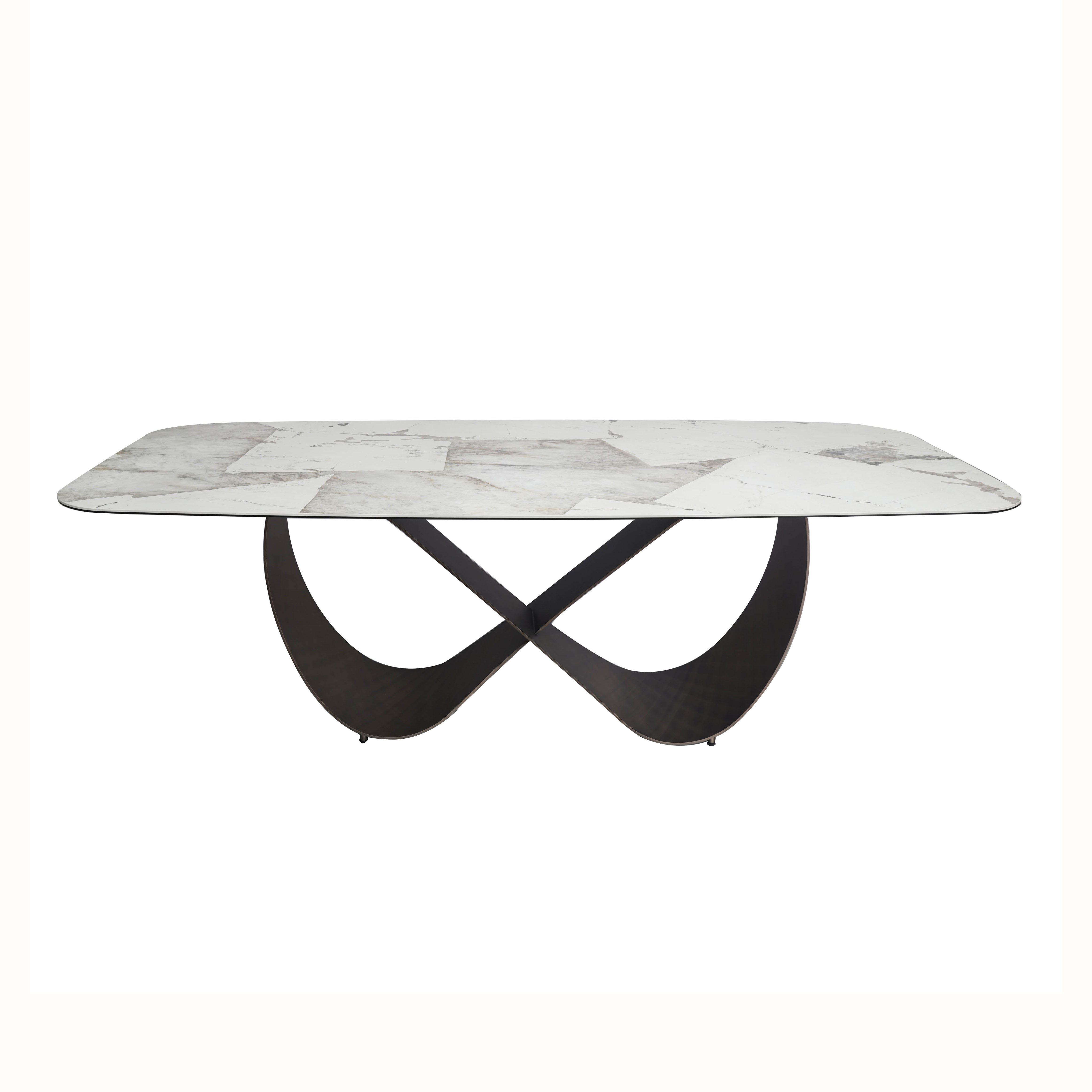 طاولة طعام فيترو I هي قطعة محورية راقية تجمع بين الفخامة العصرية والمتانة العالية. يتميز سطحها بزجاج مقسى مُصفح بسيراميك إيطالي ليمنح قوة استثنائية ومقاومة للخدوش مع تشطيب أنيق ومُصقل. ترتكز على قاعدة معدنية متينة بتصميم متقاطع أنيق باللون الذهبي مع طلاء بودرة يمنحها ثباتاً وحضوراً معمارياً معاصراً. بفضل توازنها بين الجمال والوظيفة، تضيف هذه الطاولة لمسة أناقة حديثة وفخامة دائمة إلى مساحات الطعام الراقية.