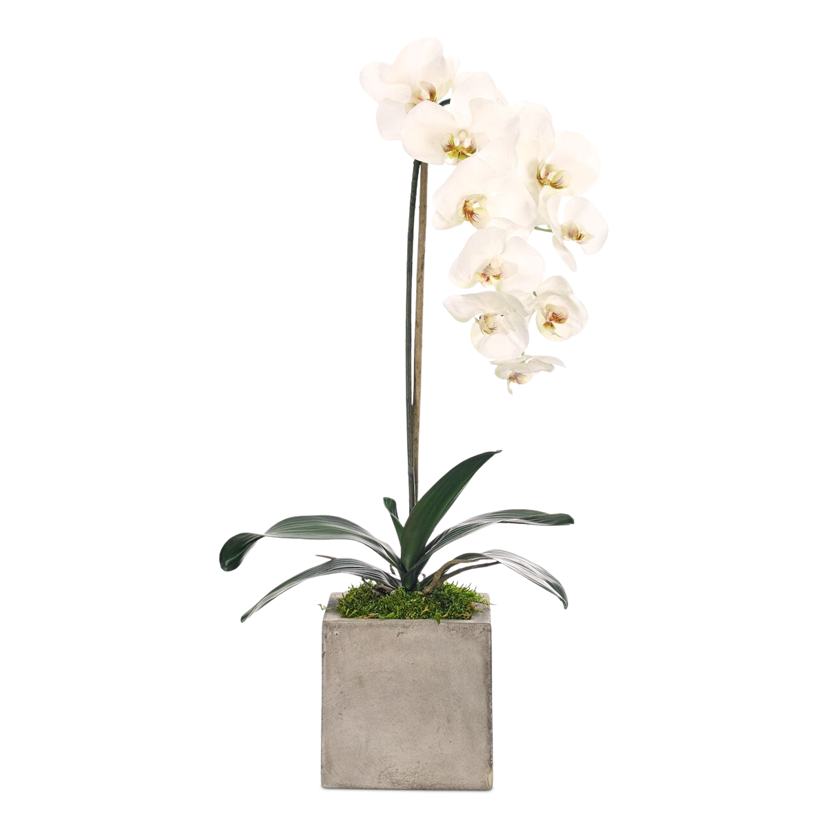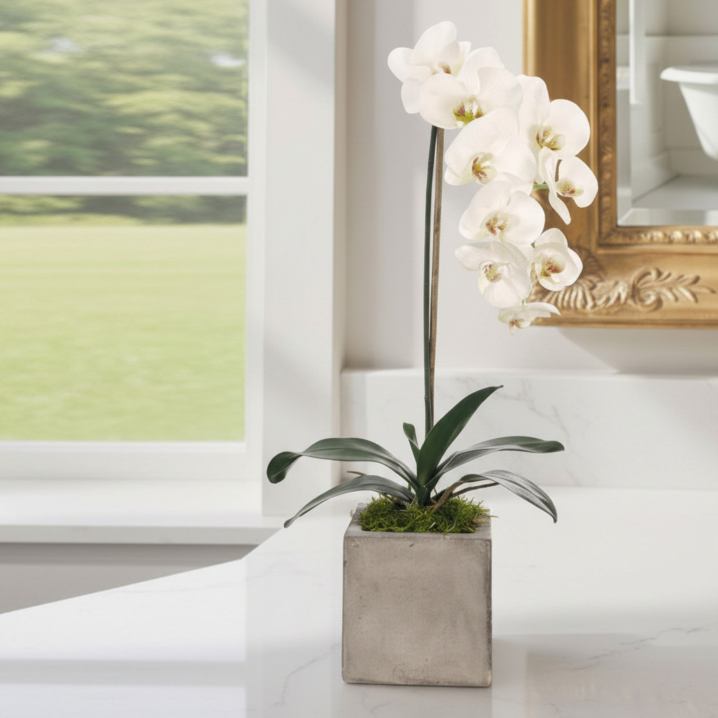 هذه الباقة المزيفة من زهور الأوركيد البيضاء، المصنوعة يدويًا بتفاصيل واقعية، مصممة بلمسة نهائية مكعبة من الخرسانة. كل زهرة مصنوعة من بتلات متعددة الطبقات وتدرجات لونية طبيعية. تحافظ القطعة على لونها وشكلها موسمًا بعد موسم. تضفي زهور الأوركيد الغريبة لمسة استوائية راقية على الديكورات الداخلية المعاصرة.