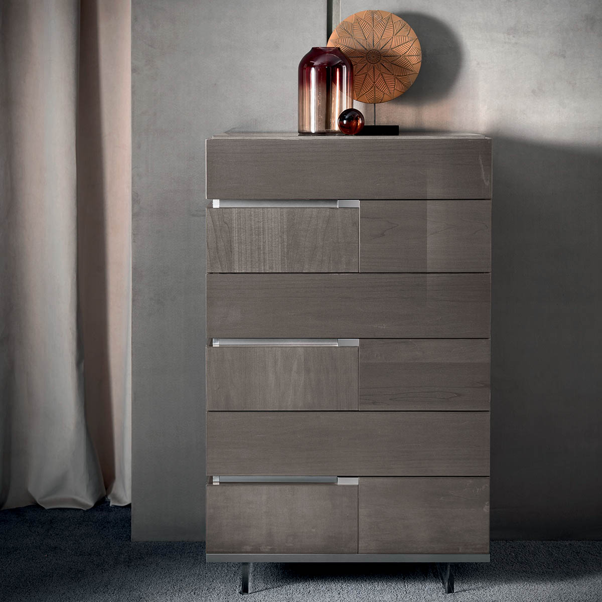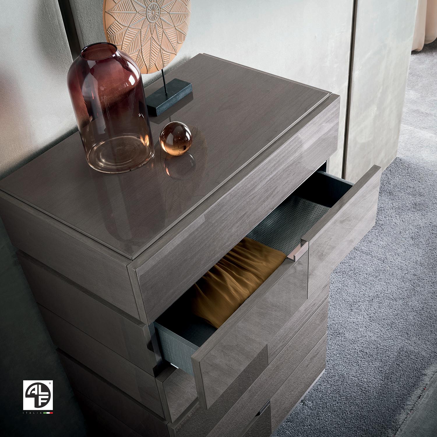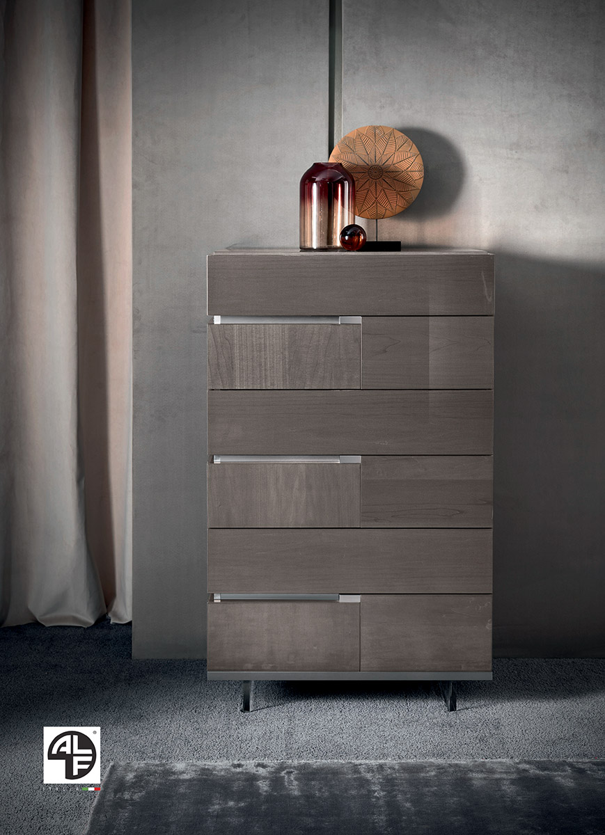 Alf Athena High Gloss 6 Drawer Dresser - The Athena Dresser is part of the Italian Bedroom Furniture Collection Athena by the ALF Group. The simply designed and contemporary ALF Athena Dresser offers impressive storage space mixing style and practicality in any master bedroom, this dresser features 6 drawers. Beautifully designed, the Athena Dresser is made of real wood veneer, covered with a High Gloss Greige lacquer and legs made from strong metal. As part of the Alf Italia Athena Collection, there are many pieces to be styled alongside the Athena Dresser.