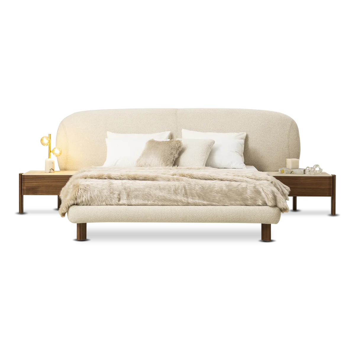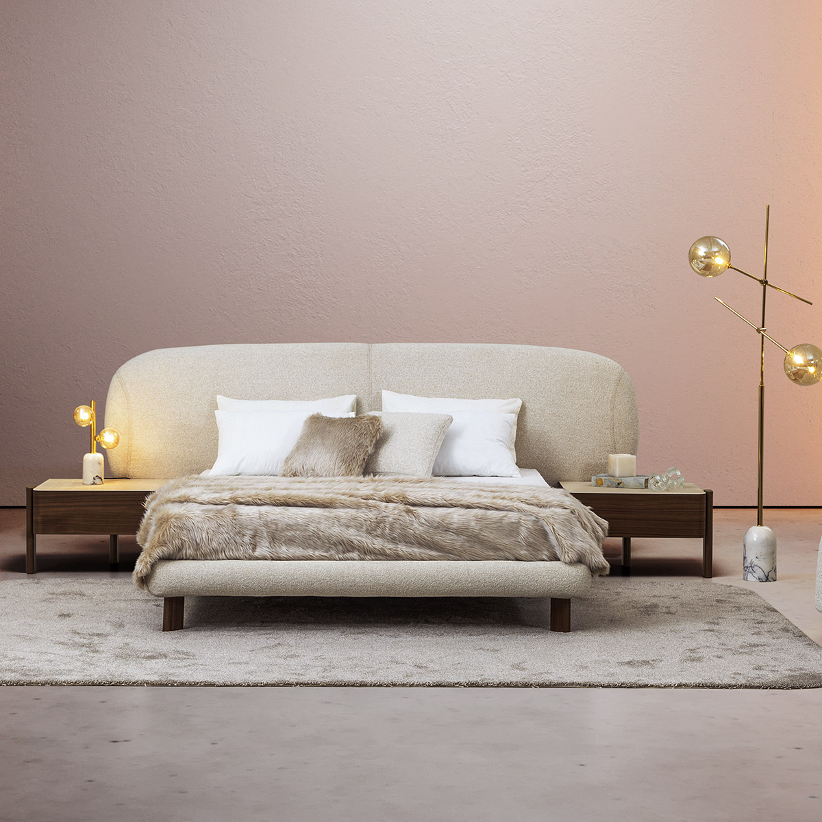 Atlas bedroom, with its soft color and the wonderful harmony of wood texture, creates a warm atmosphere in your room and adds elegance with its modern design. Gold details will be stainless steel. MDF with walnut veneered, stainless steel plating with titanium