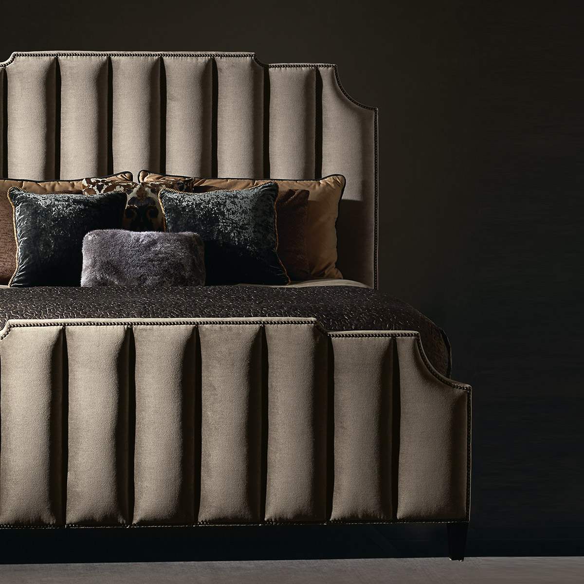 Bayonne King Bed is an elegant upholstered centerpiece where thoughtfully curated details combine in perfect harmony. Featuring a channel-tufted headboard and refined tailoring, it offers a luxurious blend of comfort and sophistication that elevates contemporary bedroom settings.
