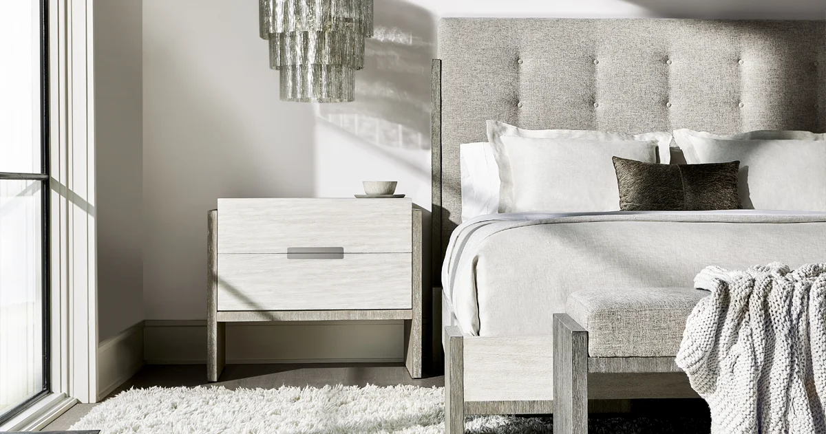 Elemental and unadorned, Foundations builds on the fundamental beauty of simple forms and perfect balance. Clean lines and intersecting planes define a sophisticated design aesthetic, softened by relaxed finishes in a palette of oyster and driftwood greys. Cerused, wire-brushed acacia reveals a deep, tactile grain. Woven textiles blend with finishes for an impression of seamless continuity. The collection feels reflective and calm, with an inherent tranquility. Its a new, refined expression of modern rustic.