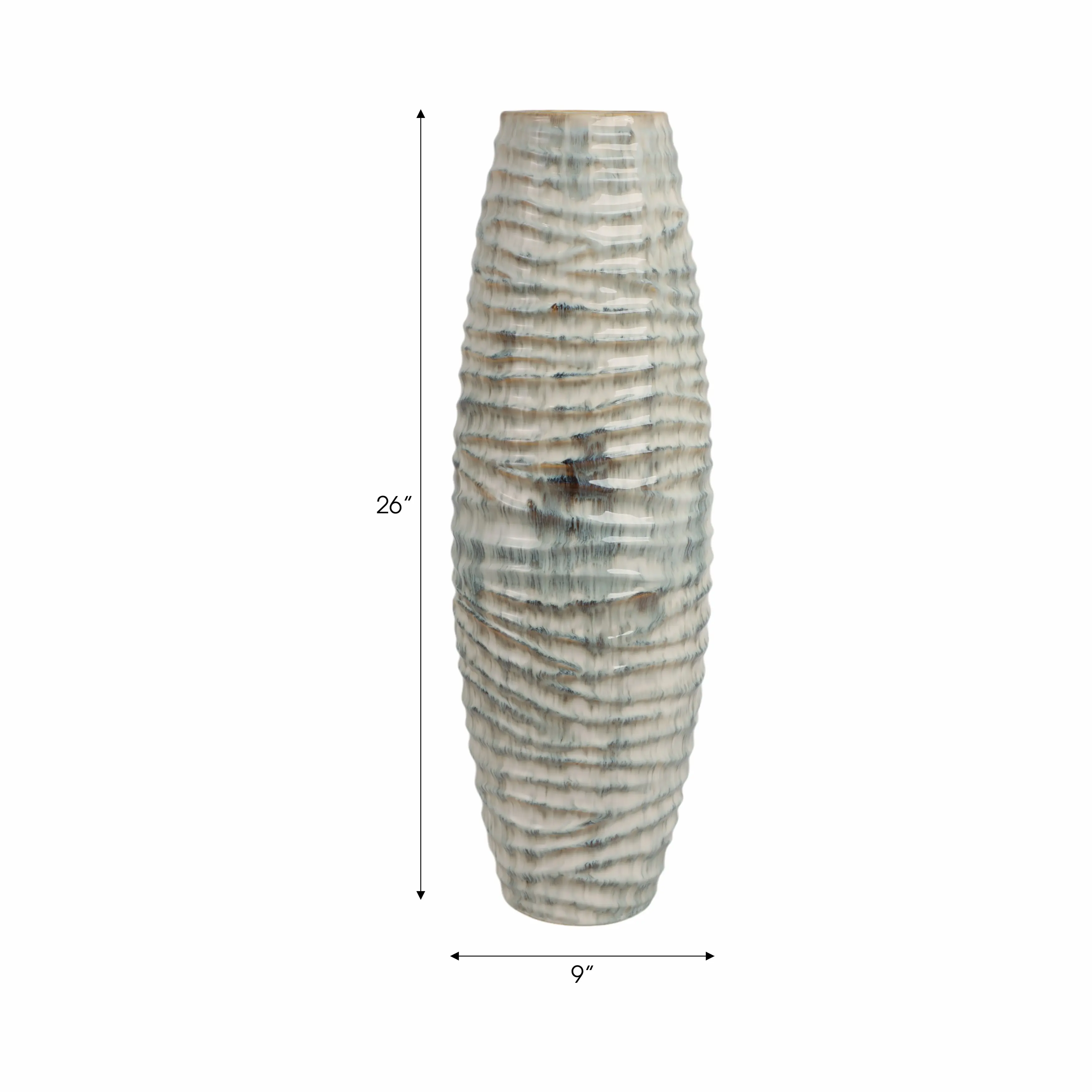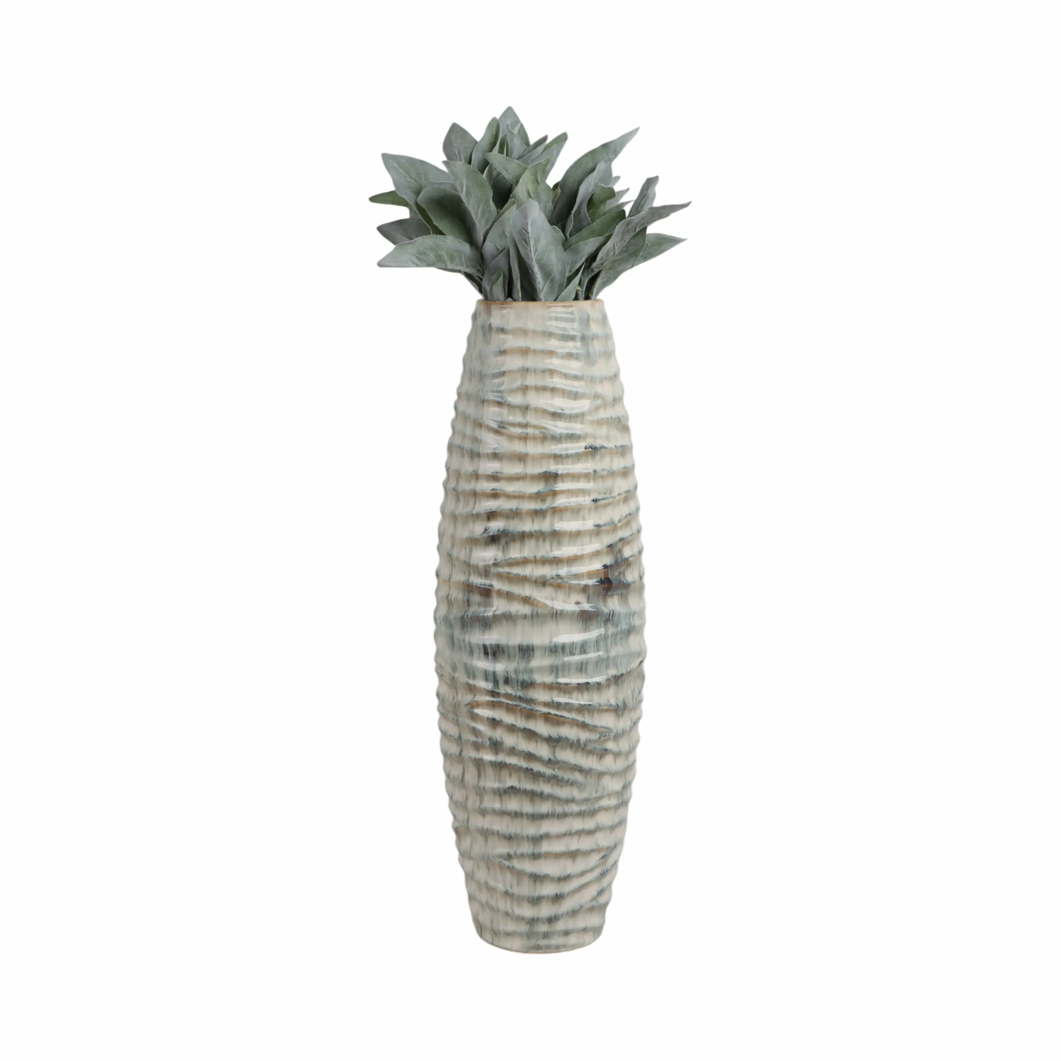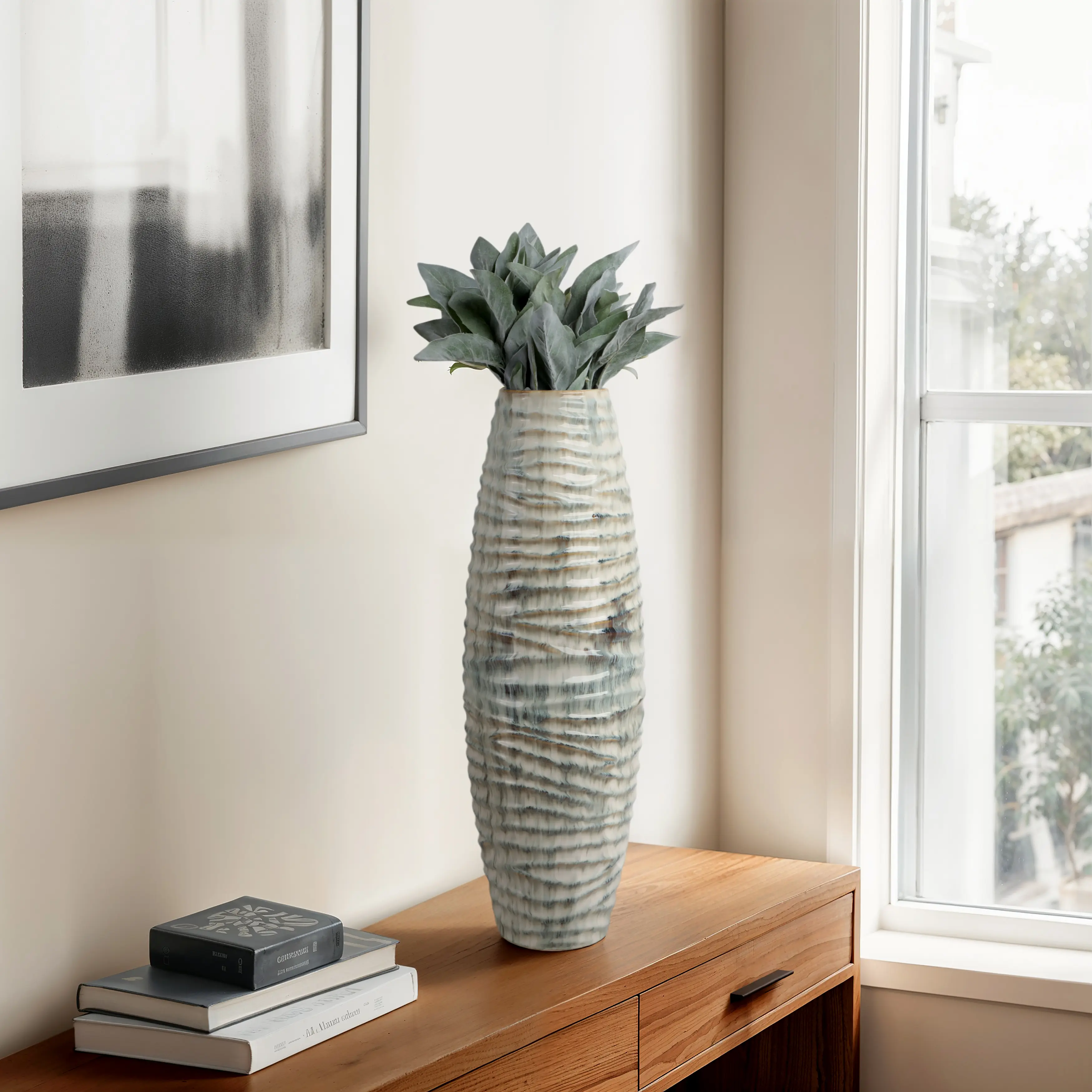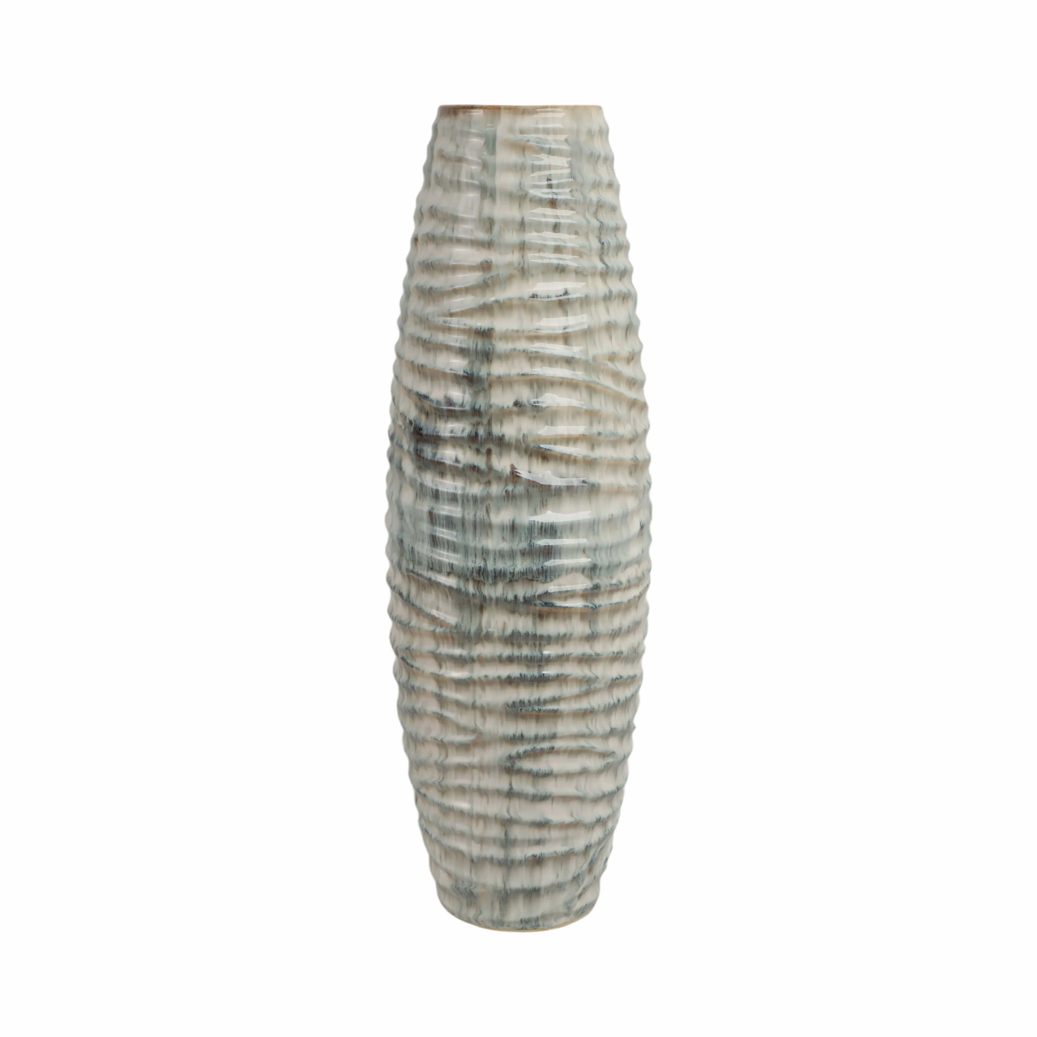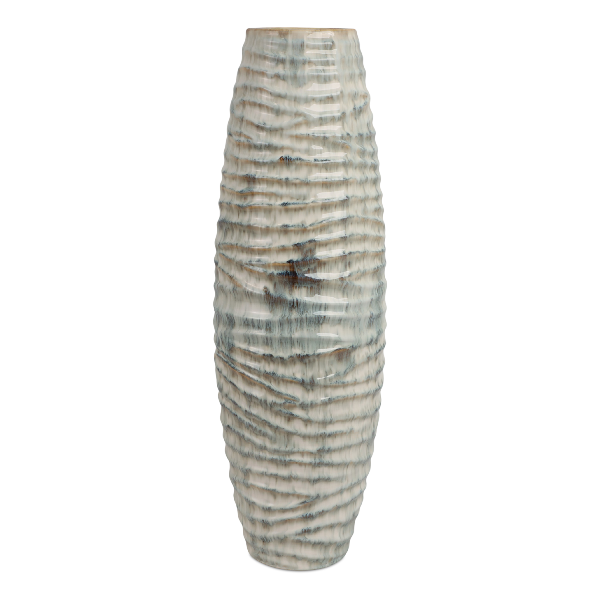 The Decorah small vase brings subtle sophistication to any space with its refined ribbed design. Crafted from durable stoneware, it features a smooth ceramic finish and a minimalist silhouette that suits both modern and classic interiors. Perfect on its own or paired with delicate dried stems, it adds texture, style, and understated elegance to shelves, consoles, and tabletops.
