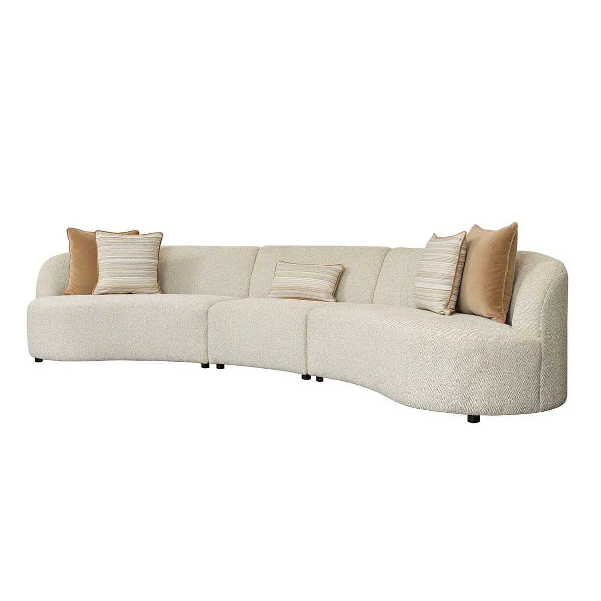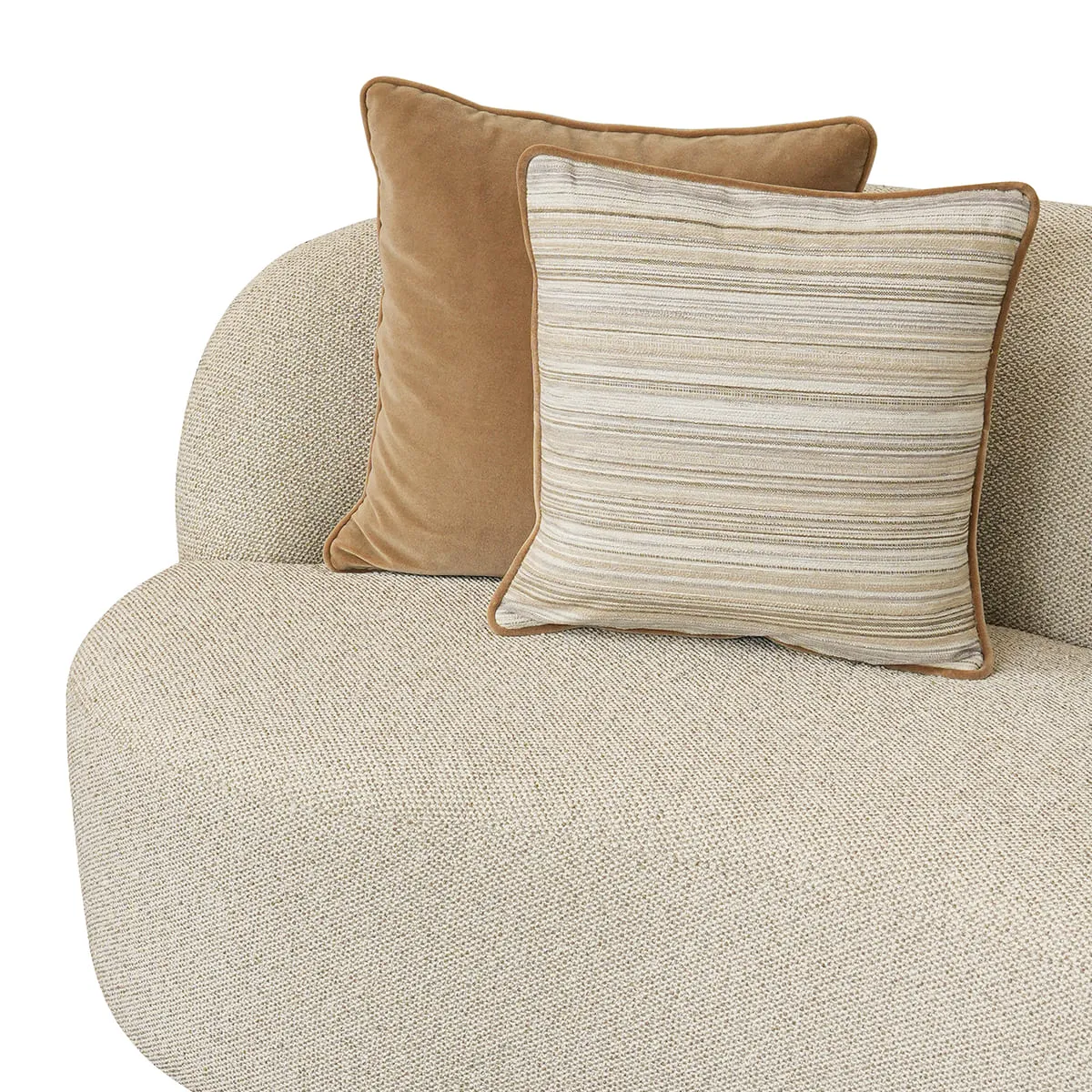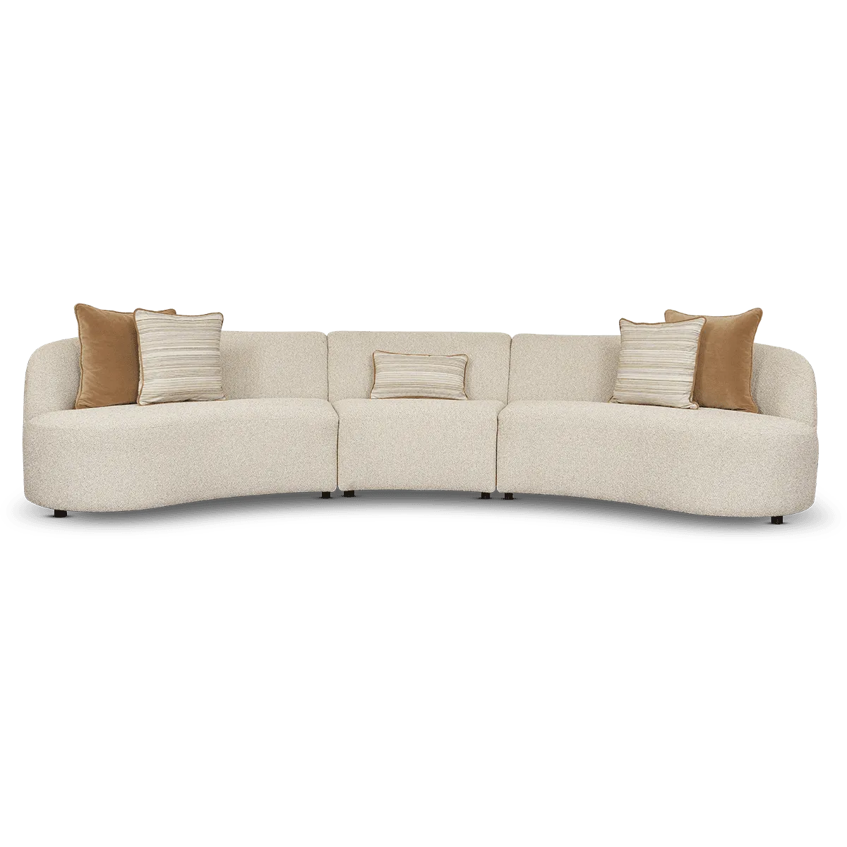 Sinuous curves and luxurious upholstery give the Elle sofa a cloud-like softness. Inspired by a traditional kidney-shaped design, the encircling back sweeps around to create a sheltering effect. The seat flows to the floor, allowing just a peek at the four feet.